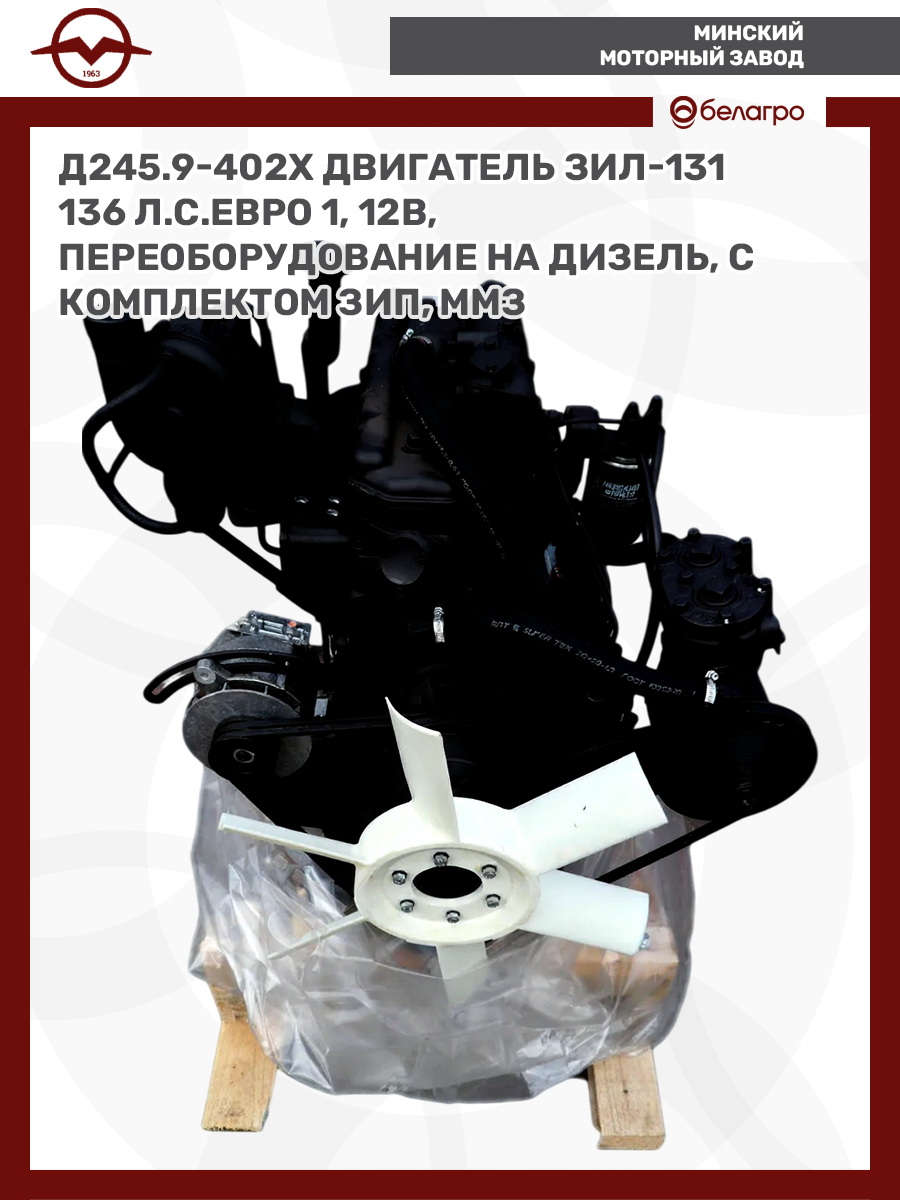 Д245.9-402Х Двигатель ЗИЛ-131 136 л.с.ЕВРО 1, 12В, переоборудование на дизель, с комплектом ЗИП, ММЗ