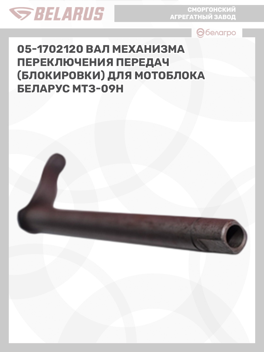Вал 05-1702120 устанавливается в механизм переключения передач 09Н-1702110 (05-1702110) на мотоблоке Беларус