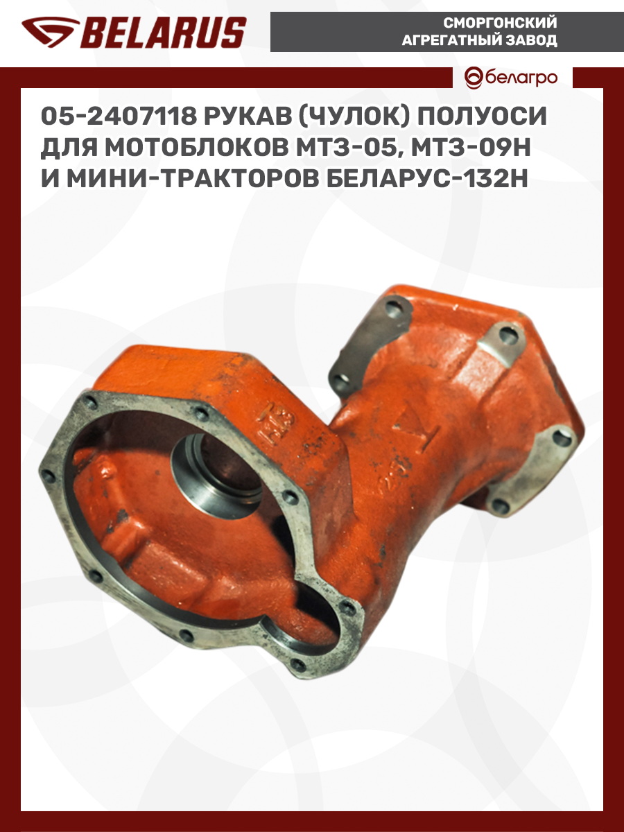 Рукав 05-2407118 (чулок) устанавливаетя на конечной передаче 09Н-2407010 (05-2407010) и подходит для любого мотоблока МТЗ 05, МТЗ 06, МТЗ 09Н, МТЗ 08Н МТЗ 12 и минитрактора МТЗ 112 и МТЗ 132, МТЗ 152Н всех годов.