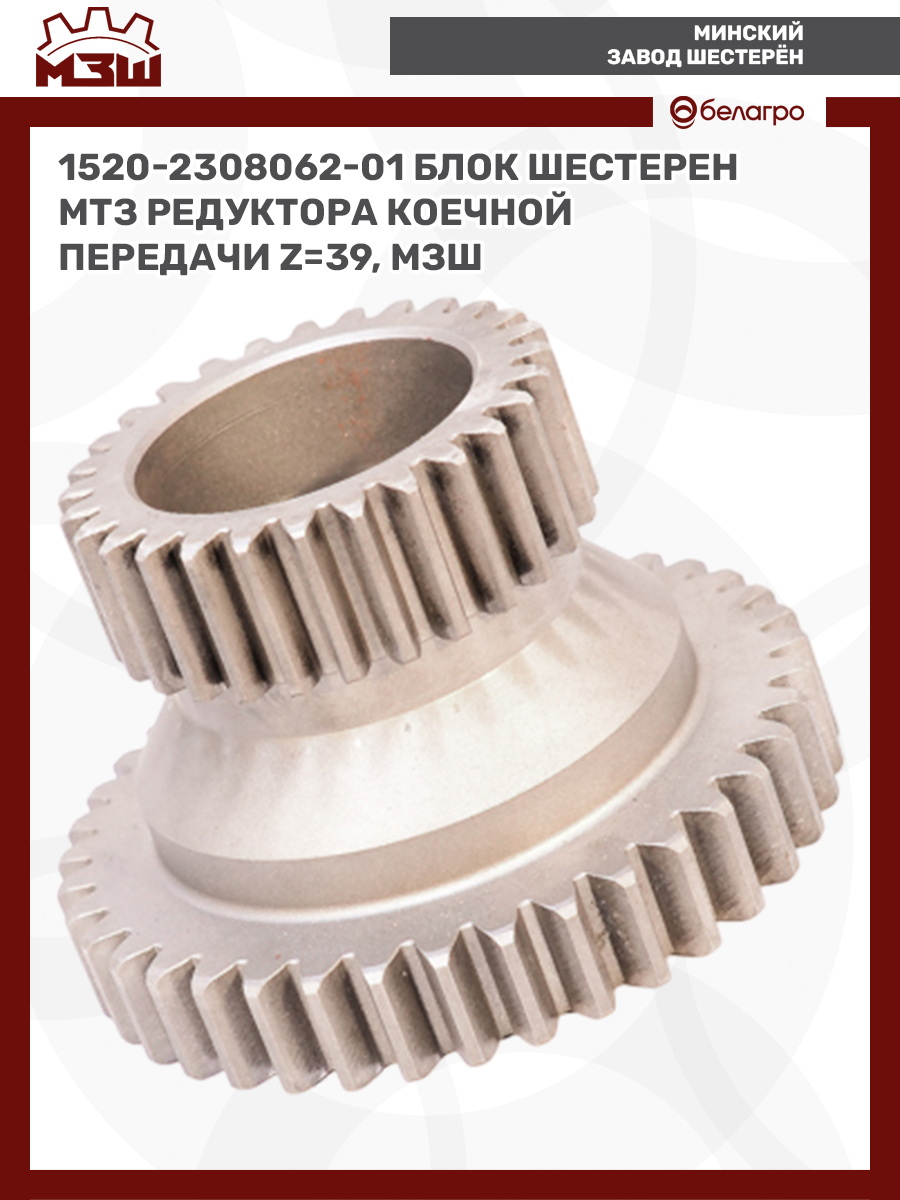 1520-2308062-01 Блок шестерен МТЗ редуктора коечной передачи, z=39, МЗШ