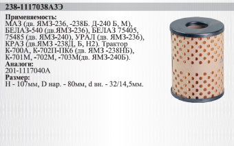 201-1117040А (238-1117038-А3Э) Фильтр топливный (картон)