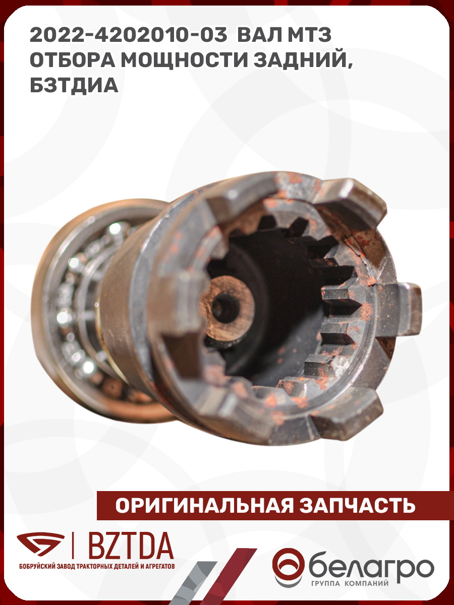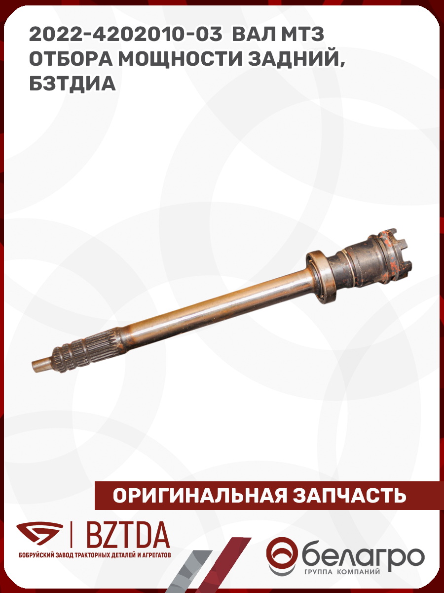-2022-4202010-03 Вал МТЗ отбора мощности задний, БЗТДиАВкладышиГидроходоуменьшители и запчасти к нимЗапчасти к автомобилямГильзы цилиндровЗапчасти к спецтехнике АМКОДОРДвигателиЗапчасти к коммунальной спецтехникеДвигатели, запчасти к нимРасходники и техжидкостиЗапчасти к двигателямХодовая часть и колёсаСистемы и агрегатыКоленвалыПоршневые кольцаПоршневые пальцыПоршнекомплектыПоршниПусковые двигатели и запчасти к нимТурбокомпрессорыЗапчасти к тракторам ХТЗ (Т-150)