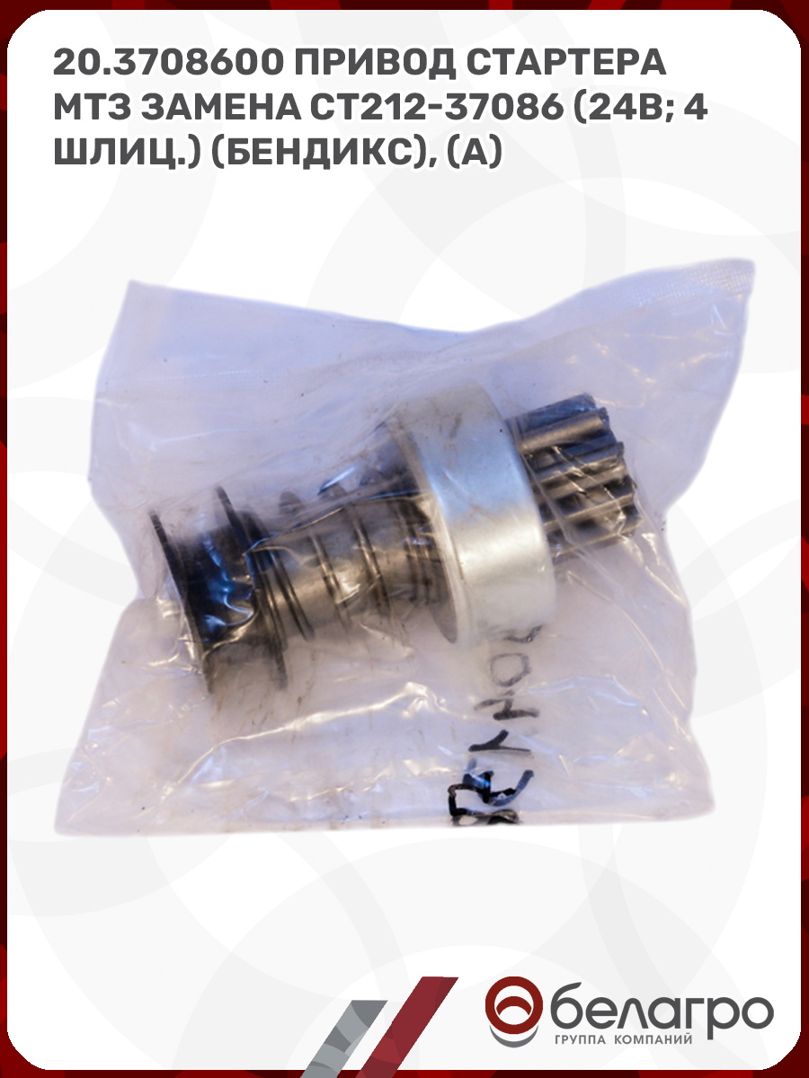 20.3708600 Привод стартера МТЗ замена СТ212-37086 (24В; 4шлиц.) (бендикс), (А)