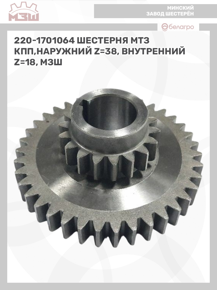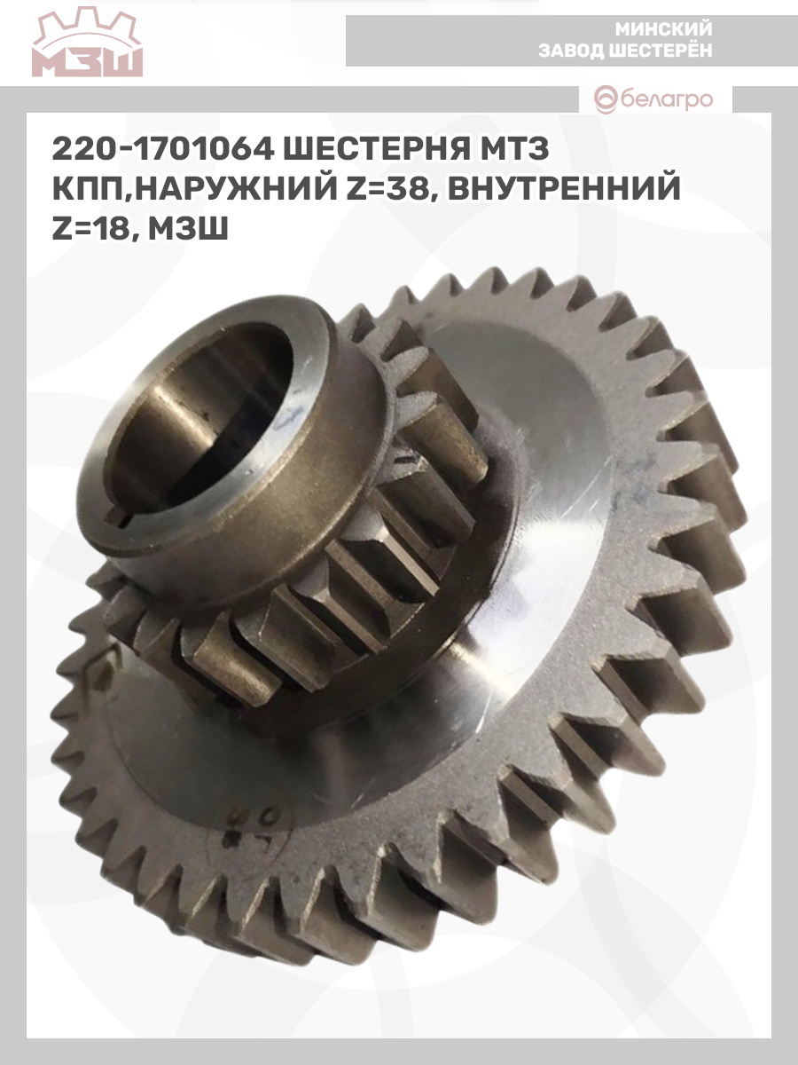 220-1701064 Шестерня МТЗ КПП,наружний z=38, внутренний z=18, МЗШ