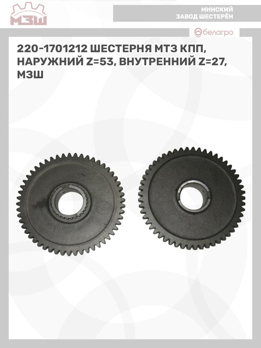 220-1701212 Шестерня МТЗ КПП, наружний z=53, внутренний z=27, МЗШ