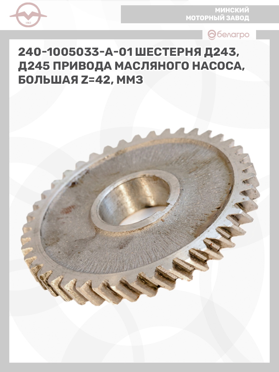240-1005033-А-01 Шестерня Д243, Д245 привода масляного насоса, большая, z=42, ММЗ