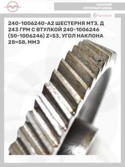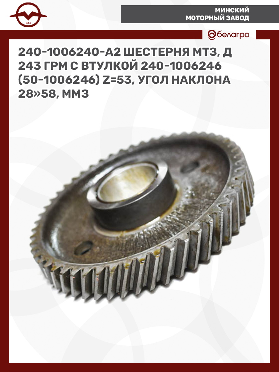 240-1006240-А2 Шестерня МТЗ, Д243 ГРМ с втулкой 240-1006246 (50-1006246), z=53, угол наклона 28"58, ММЗ