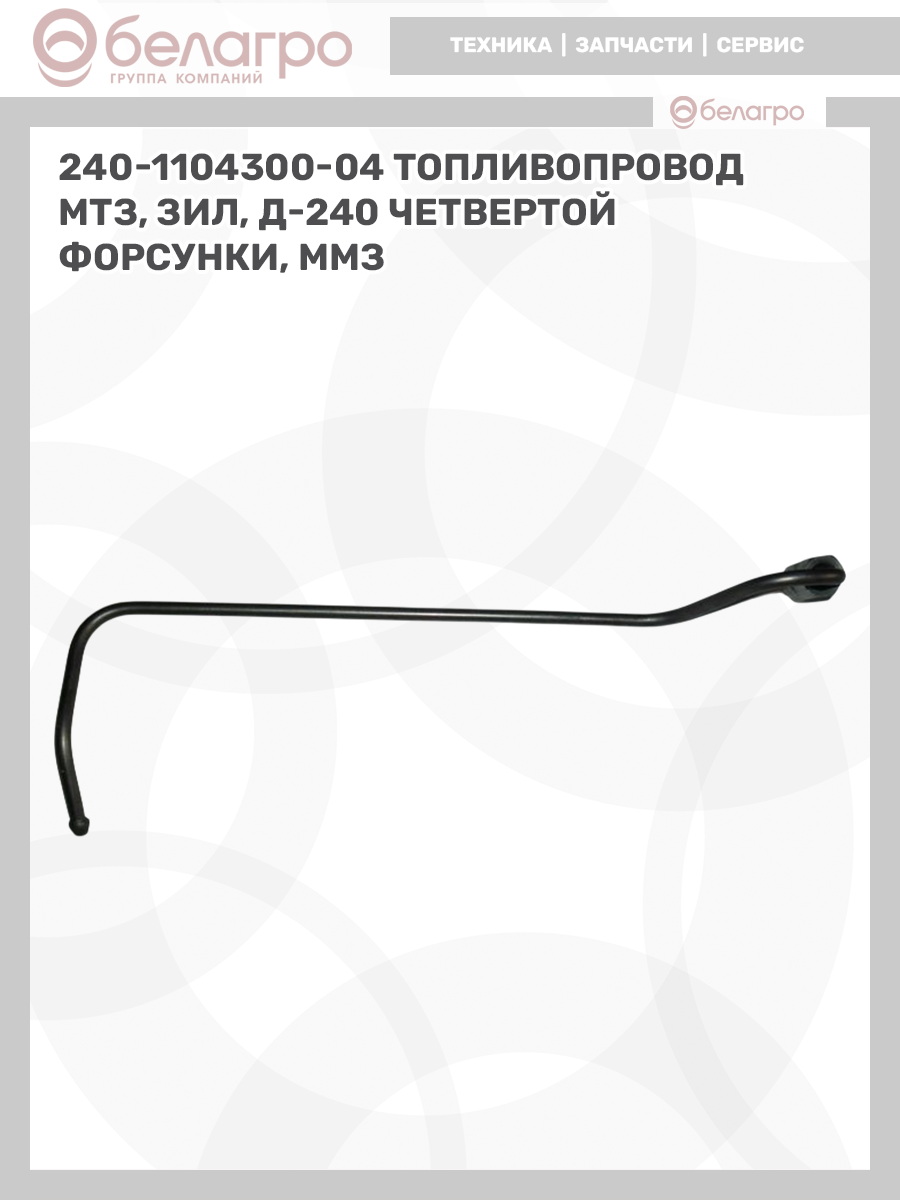 -240-1104300-04 Топливопровод МТЗ, ЗИЛ, Д-240 четвертой форсунки, ММЗЗапчасти к тракторам Беларус (МТЗ)ВкладышиГидроходоуменьшители и запчасти к нимЗапчасти к автомобилямГильзы цилиндровЗапчасти к спецтехнике АМКОДОРДвигателиЗапчасти к коммунальной спецтехникеДвигатели, запчасти к нимРасходники и техжидкостиХодовая часть и колёсаСистемы и агрегатыКоленвалыПоршневые кольцаПоршневые пальцыПоршнекомплектыПоршниПусковые двигатели и запчасти к нимТурбокомпрессорыЗапчасти к тракторам ХТЗ (Т-150)