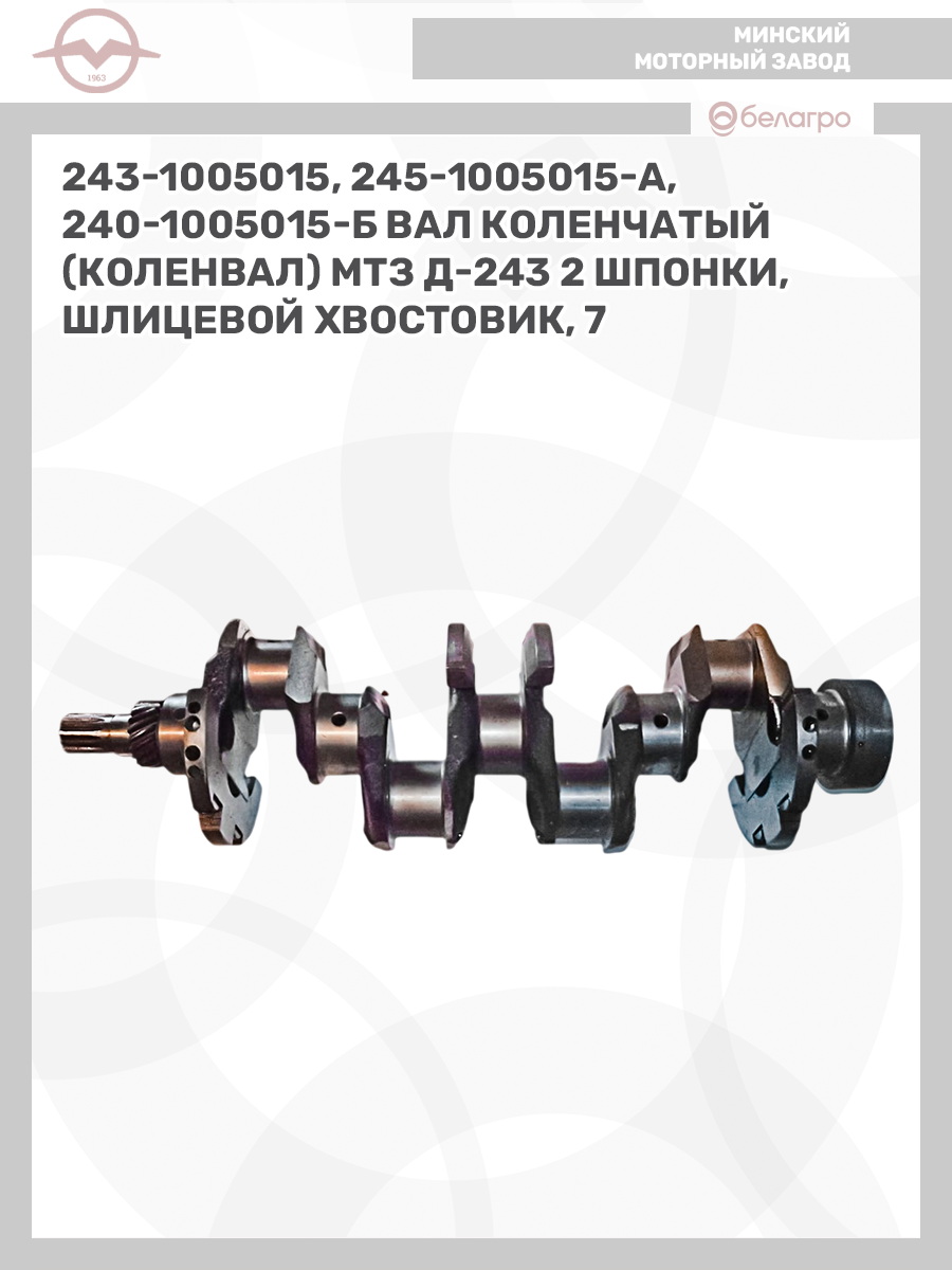 243-1005015/245-1005015-А/ Вал коленчатый МТЗ, Д-243 (240-1005015-Б) 2 шпонки, шлицевой хвостовик, 7 отверстий (коленвал), ММЗ