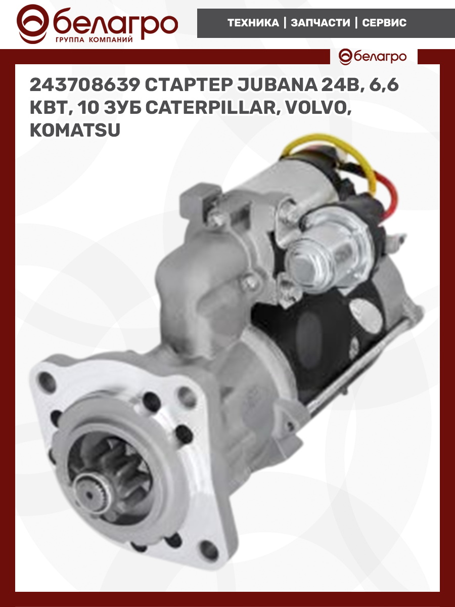 243708639 Cтартер JUBANA 24В, 6,6 кВт, 10 зуб CATERPILLAR, VOLVO, KOMATSU