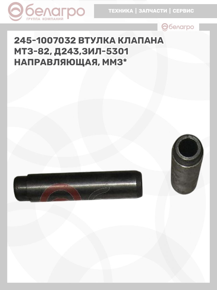 -245-1007032 Втулка клапана МТЗ-82, Д243,ЗИЛ-5301 направляющая, ММЗ*Запчасти к тракторам Беларус (МТЗ)ВкладышиГидроходоуменьшители и запчасти к нимЗапчасти к автомобилямГильзы цилиндровЗапчасти к спецтехнике АМКОДОРДвигателиЗапчасти к коммунальной спецтехникеДвигатели, запчасти к нимРасходники и техжидкостиХодовая часть и колёсаСистемы и агрегатыКоленвалыПоршневые кольцаПоршневые пальцыПоршнекомплектыПоршниПусковые двигатели и запчасти к нимТурбокомпрессорыЗапчасти к тракторам ХТЗ (Т-150)