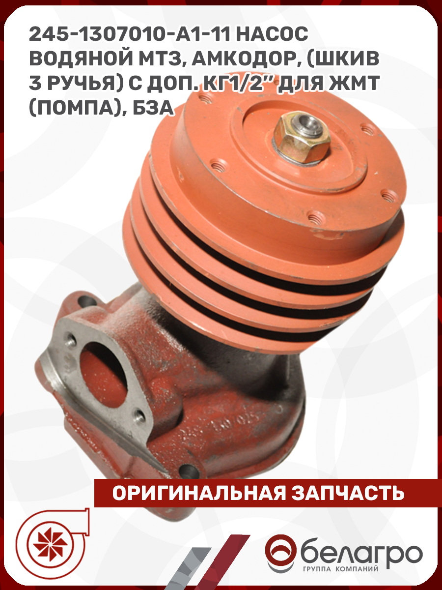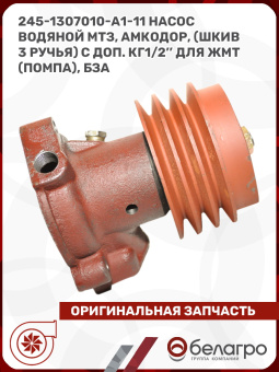 245-1307010-А1-11 Насос водяной МТЗ, Амкодор, (шкив 3 ручья) с доп. КГ1/2'' для ЖМТ (помпа), БЗА