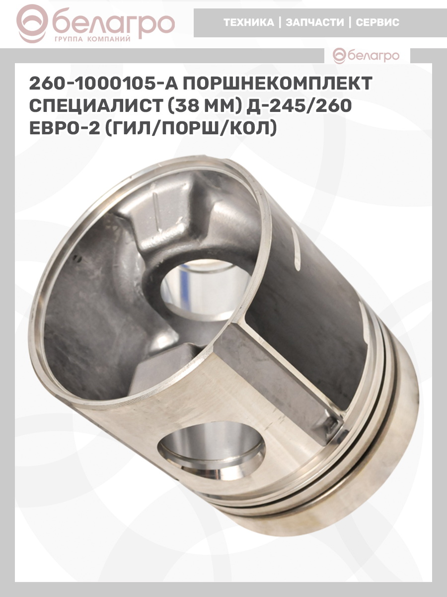 -260-1000105-А Поршнекомплект Специалист (38 мм) Д-245/260 ЕВРО-2 (гил/порш/кол)Запчасти к тракторам Беларус (МТЗ)ВкладышиГидроходоуменьшители и запчасти к нимЗапчасти к автомобилямГильзы цилиндровЗапчасти к спецтехнике АМКОДОРДвигателиЗапчасти к коммунальной спецтехникеДвигатели, запчасти к нимРасходники и техжидкостиХодовая часть и колёсаСистемы и агрегатыКоленвалыПоршневые кольцаПоршневые пальцыПоршнекомплектыПоршниПусковые двигатели и запчасти к нимТурбокомпрессорыЗапчасти к тракторам ХТЗ (Т-150)