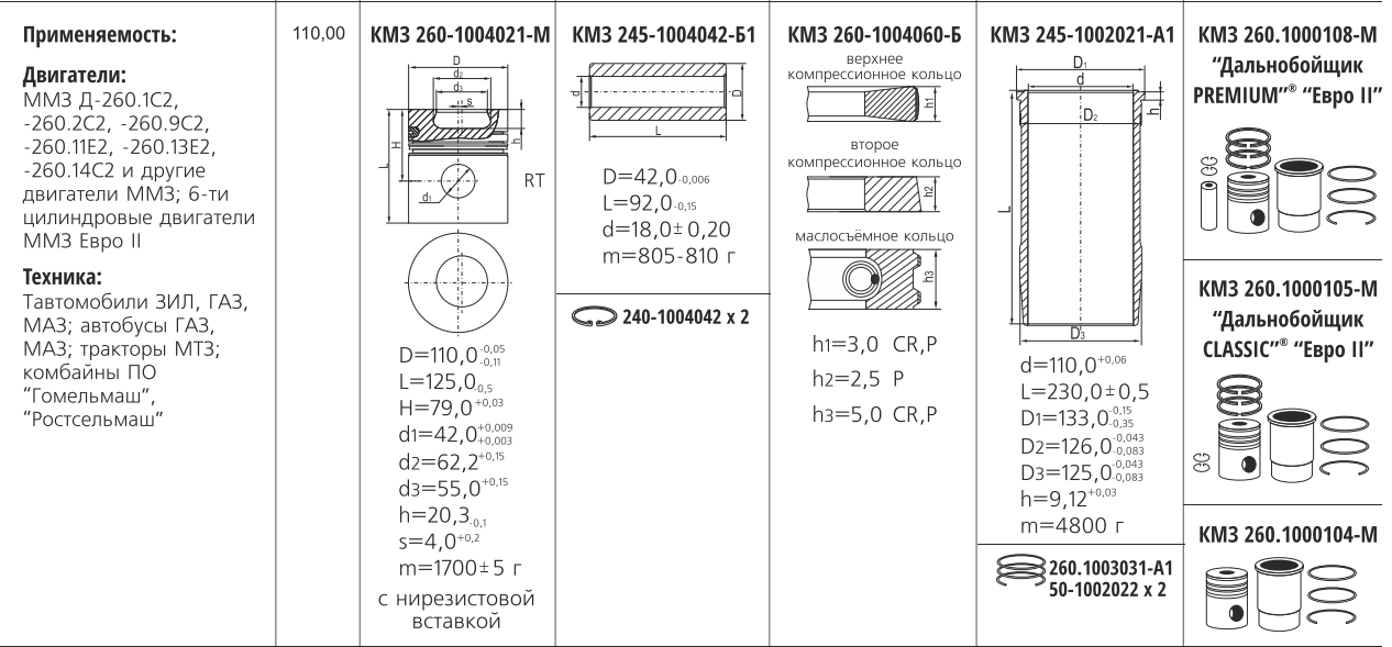 260-1000108-М Поршнекомплект Мтз, Маз, "Дальнобойщик" (Евро-2) палец 42 мм, полный комплект