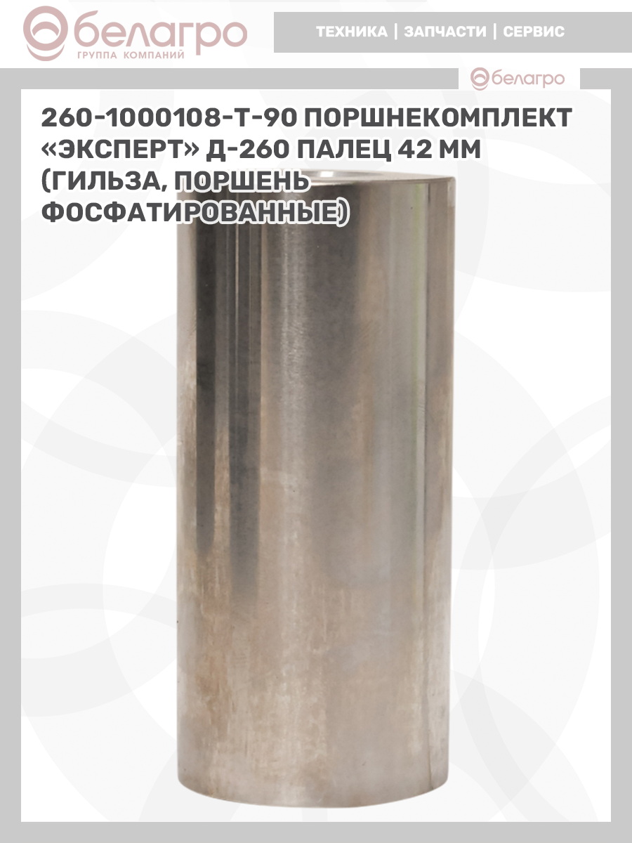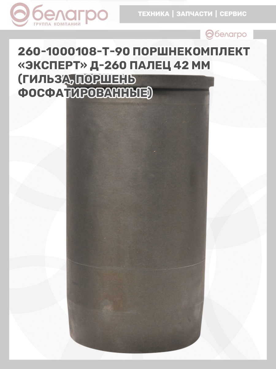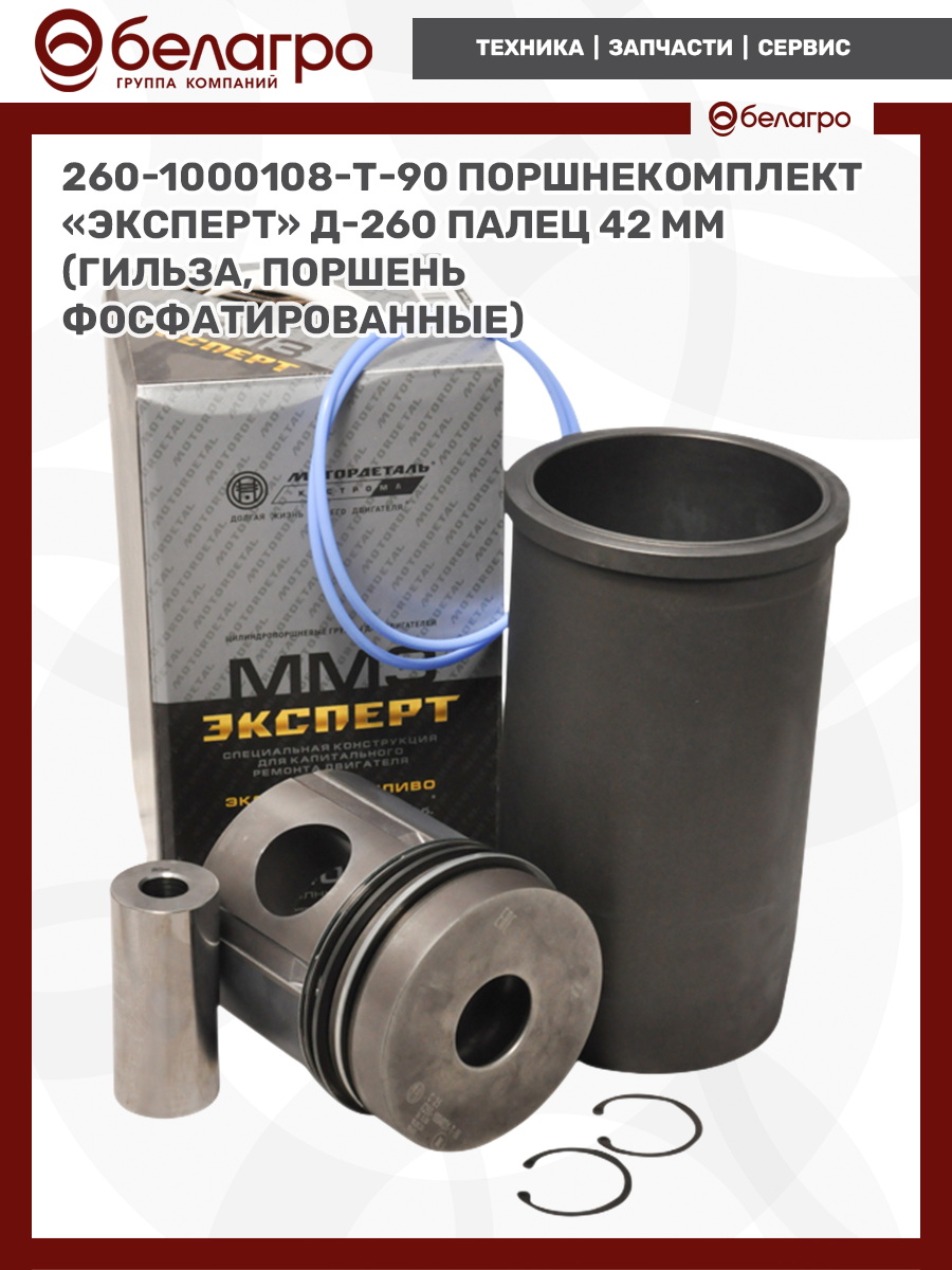 -260-1000108-Т-90 Поршнекомплект "Эксперт" Д-260 палец 42 мм (гильза, поршень фосфатированные), РФЗапчасти к тракторам Беларус (МТЗ)ВкладышиГидроходоуменьшители и запчасти к нимЗапчасти к автомобилямГильзы цилиндровЗапчасти к спецтехнике АМКОДОРДвигателиЗапчасти к коммунальной спецтехникеДвигатели, запчасти к нимРасходники и техжидкостиХодовая часть и колёсаСистемы и агрегатыКоленвалыПоршневые кольцаПоршневые пальцыПоршнекомплектыПоршниПусковые двигатели и запчасти к нимТурбокомпрессорыЗапчасти к тракторам ХТЗ (Т-150)