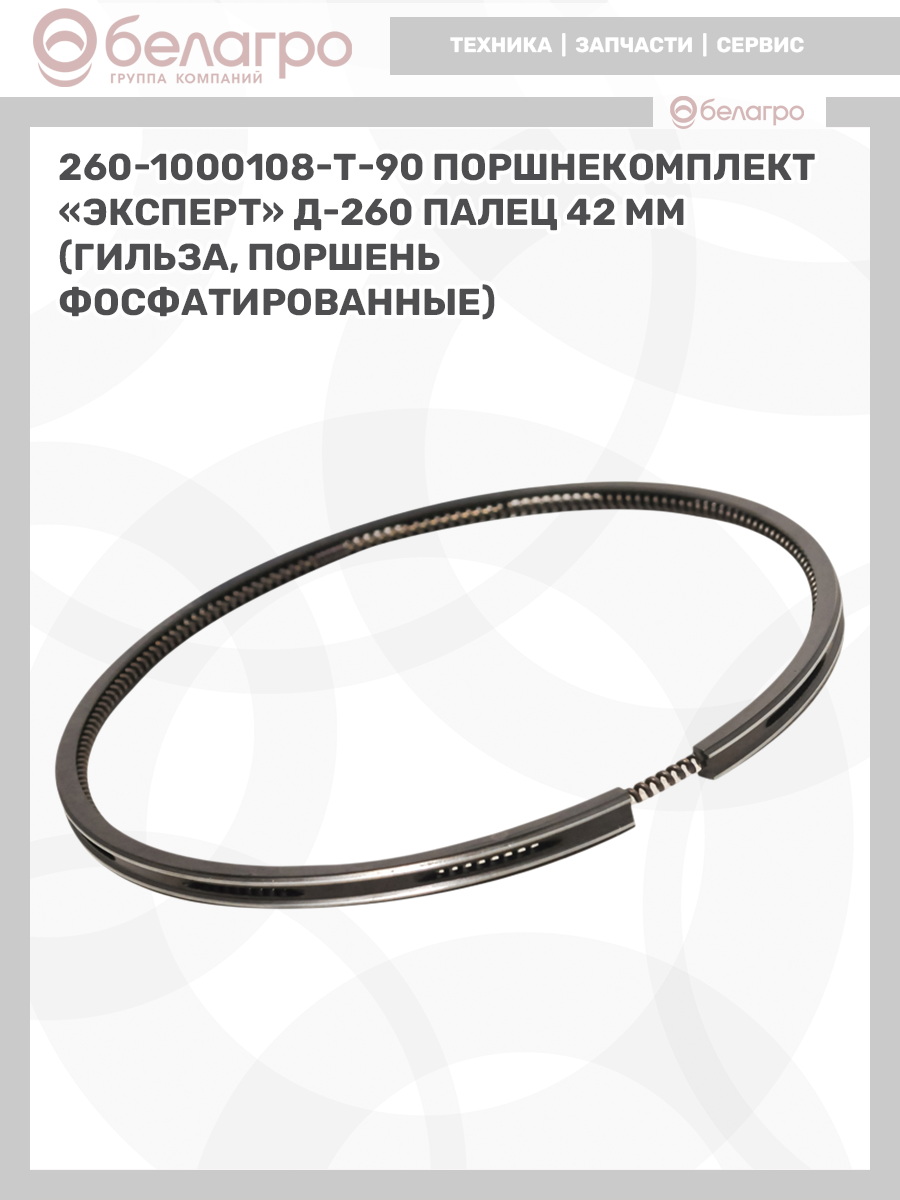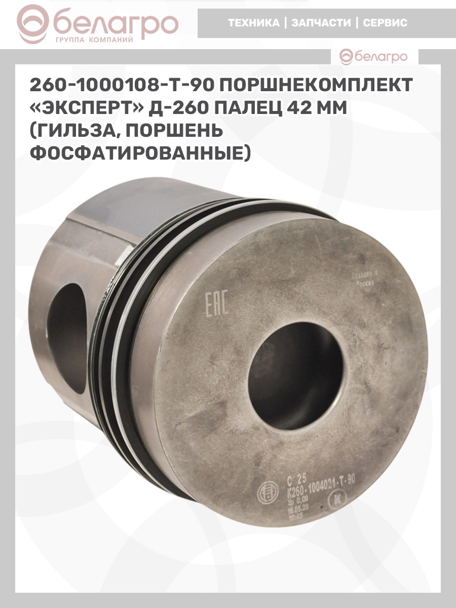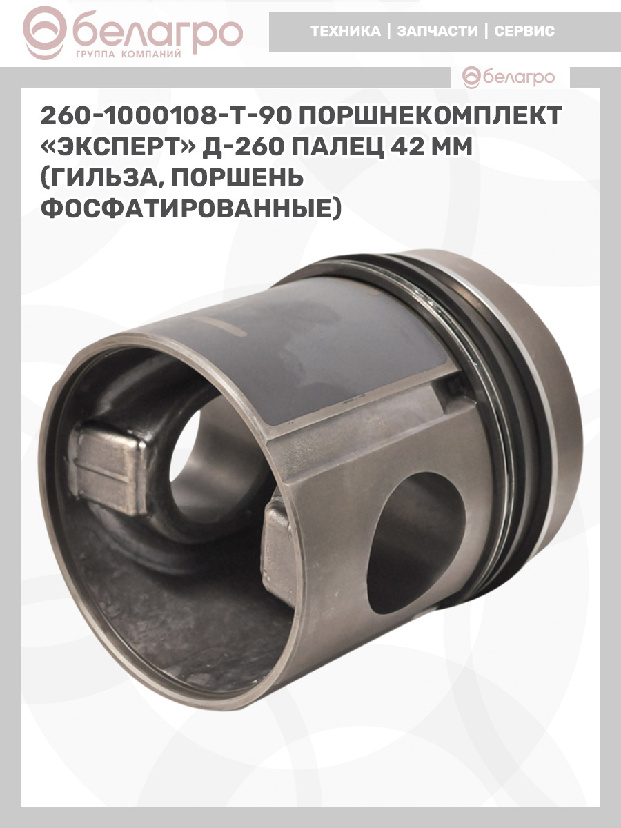 -260-1000108-Т-90 Поршнекомплект "Эксперт" Д-260 палец 42 мм (гильза, поршень фосфатированные), РФЗапчасти к тракторам Беларус (МТЗ)ВкладышиГидроходоуменьшители и запчасти к нимЗапчасти к автомобилямГильзы цилиндровЗапчасти к спецтехнике АМКОДОРДвигателиЗапчасти к коммунальной спецтехникеДвигатели, запчасти к нимРасходники и техжидкостиХодовая часть и колёсаСистемы и агрегатыКоленвалыПоршневые кольцаПоршневые пальцыПоршнекомплектыПоршниПусковые двигатели и запчасти к нимТурбокомпрессорыЗапчасти к тракторам ХТЗ (Т-150)