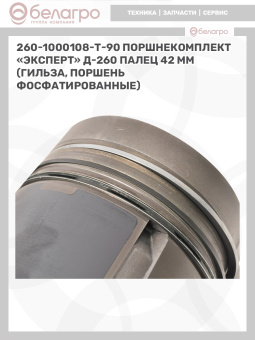 260-1000108-Т-90 Поршнекомплект "Эксперт" Д-260 палец 42 мм (гильза, поршень фосфатированные), РФ