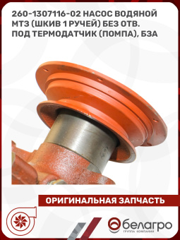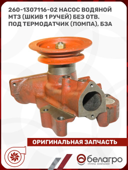 260-1307116-02 Насос водяной МТЗ (шкив 1 ручей) без отв. под термодатчик (помпа), БЗА