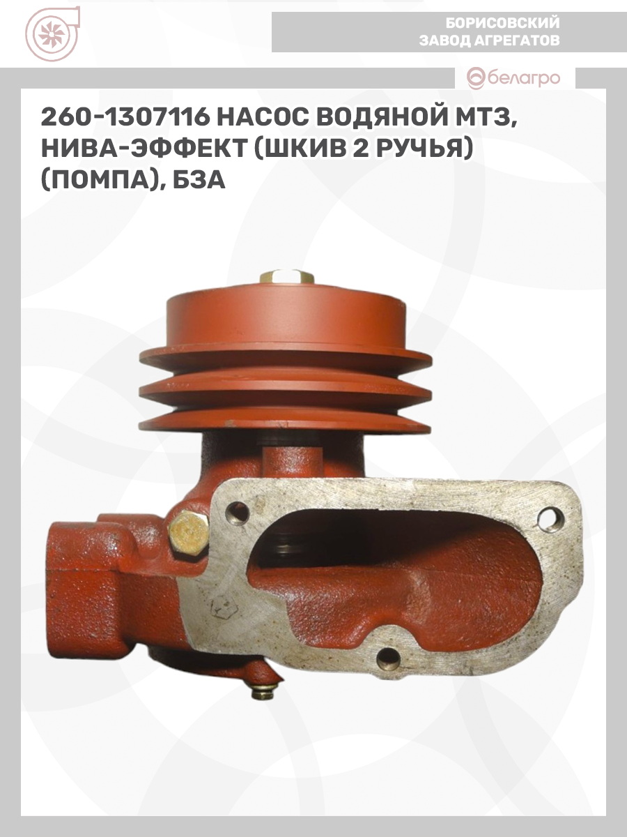 260-1307116 Насос водяной МТЗ, Нива-эффект (шкив 2 ручья) (помпа), БЗА