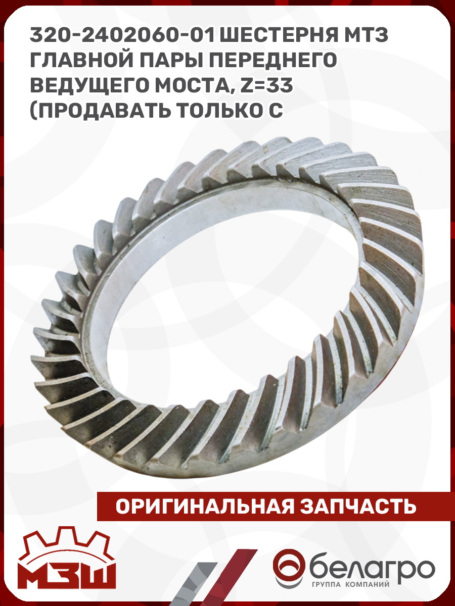-320-2402060-01 Шестерня МТЗ главной пары переднего ведущего моста, z=33 (продавать только с 320-2402017-01), МЗШВкладышиГидроходоуменьшители и запчасти к нимЗапчасти к автомобилямГильзы цилиндровЗапчасти к спецтехнике АМКОДОРДвигателиЗапчасти к коммунальной спецтехникеДвигатели, запчасти к нимРасходники и техжидкостиЗапчасти к двигателямХодовая часть и колёсаСистемы и агрегатыКоленвалыПоршневые кольцаПоршневые пальцыПоршнекомплектыПоршниПусковые двигатели и запчасти к нимТурбокомпрессорыЗапчасти к тракторам ХТЗ (Т-150)