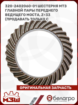 320-2402060-01 Шестерня МТЗ главной пары переднего ведущего моста, z=33 (продавать только с 320-2402017-01), МЗШ