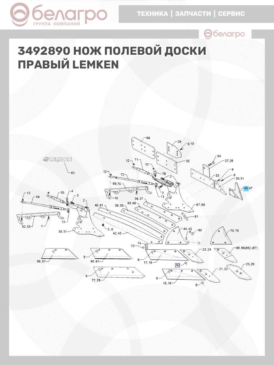 3492890 Нож полевой доски правый Lemken