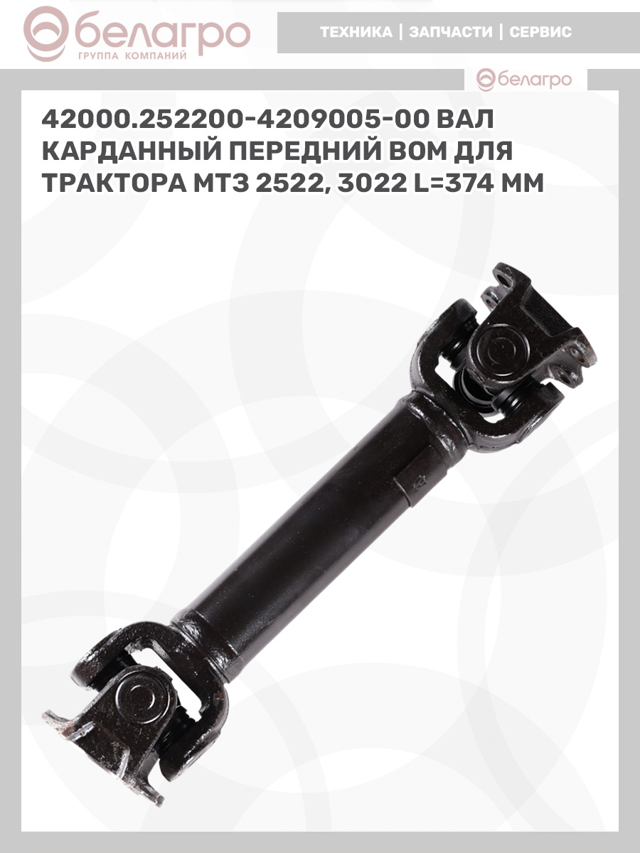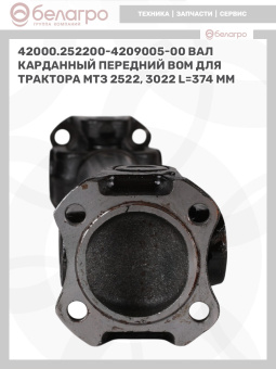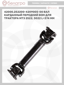 42000.252200-4209005-00 Вал карданный передний ВОМ для трактора МТЗ 2522, 3022, длина 374 мм