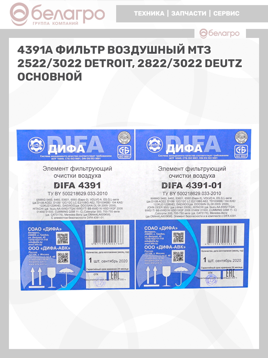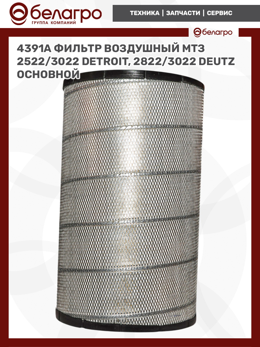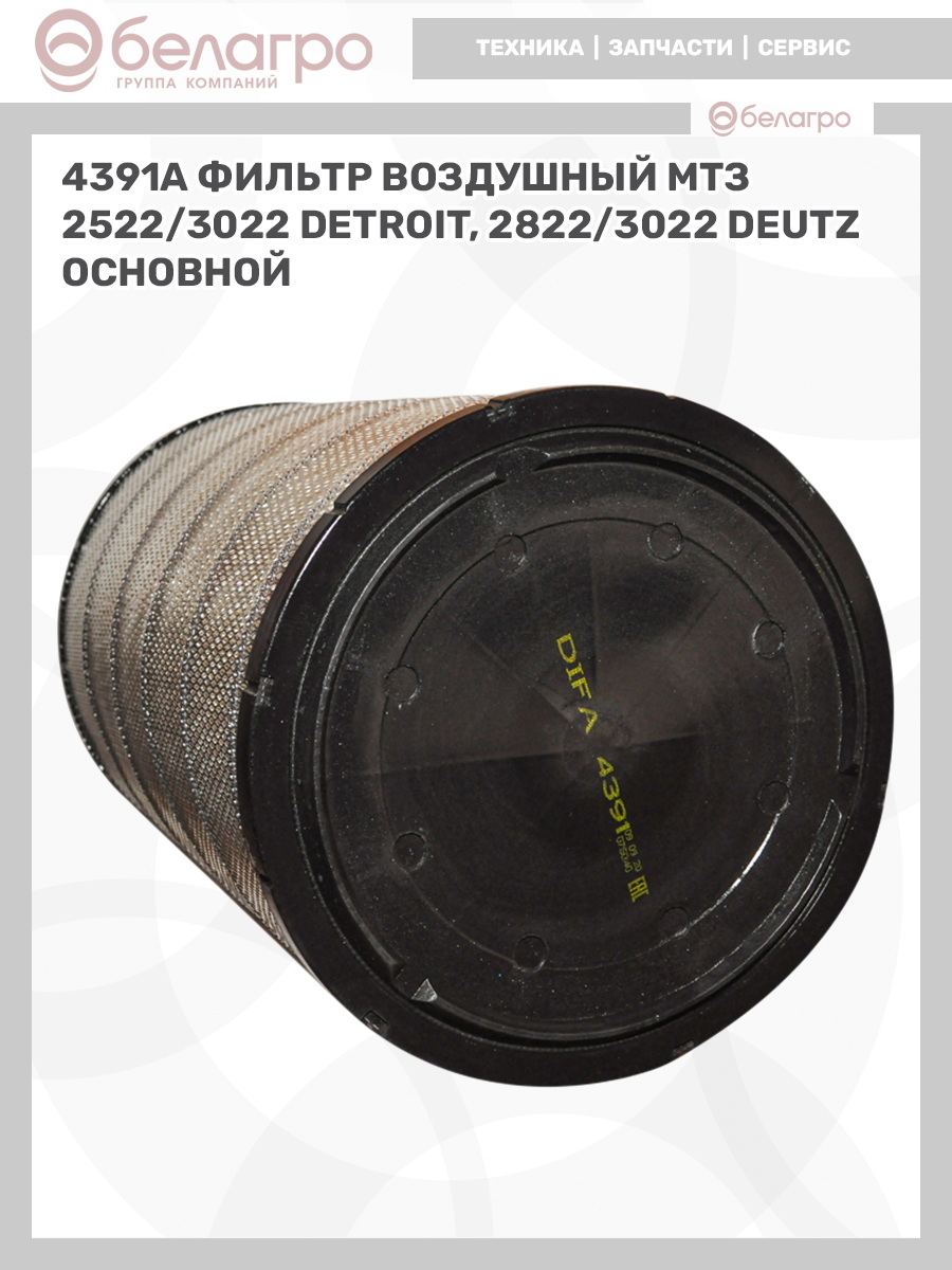 --4391А DIFA Фильтр воздушный МТЗ 2522/3022 Detroit, 2822/3022 Deutz (основной)Запчасти к тракторам Беларус (МТЗ)ВкладышиГидроходоуменьшители и запчасти к нимЗапчасти к автомобилямГильзы цилиндровЗапчасти к спецтехнике АМКОДОРДвигателиЗапчасти к коммунальной спецтехникеДвигатели, запчасти к нимРасходники и техжидкостиХодовая часть и колёсаЗапчасти к двигателямСистемы и агрегатыКоленвалыПоршневые кольцаПоршневые пальцыПоршнекомплектыПоршниПусковые двигатели и запчасти к нимТурбокомпрессорыЗапчасти к тракторам ХТЗ (Т-150)