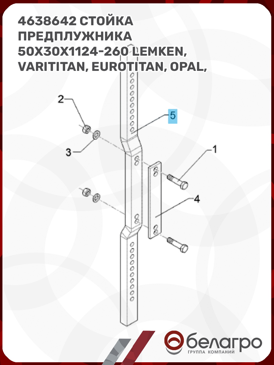 4638642 Стойка предплужника 50x30x1124-260 (Lemken, Varititan, Eurotitan, Opal, Diamant)