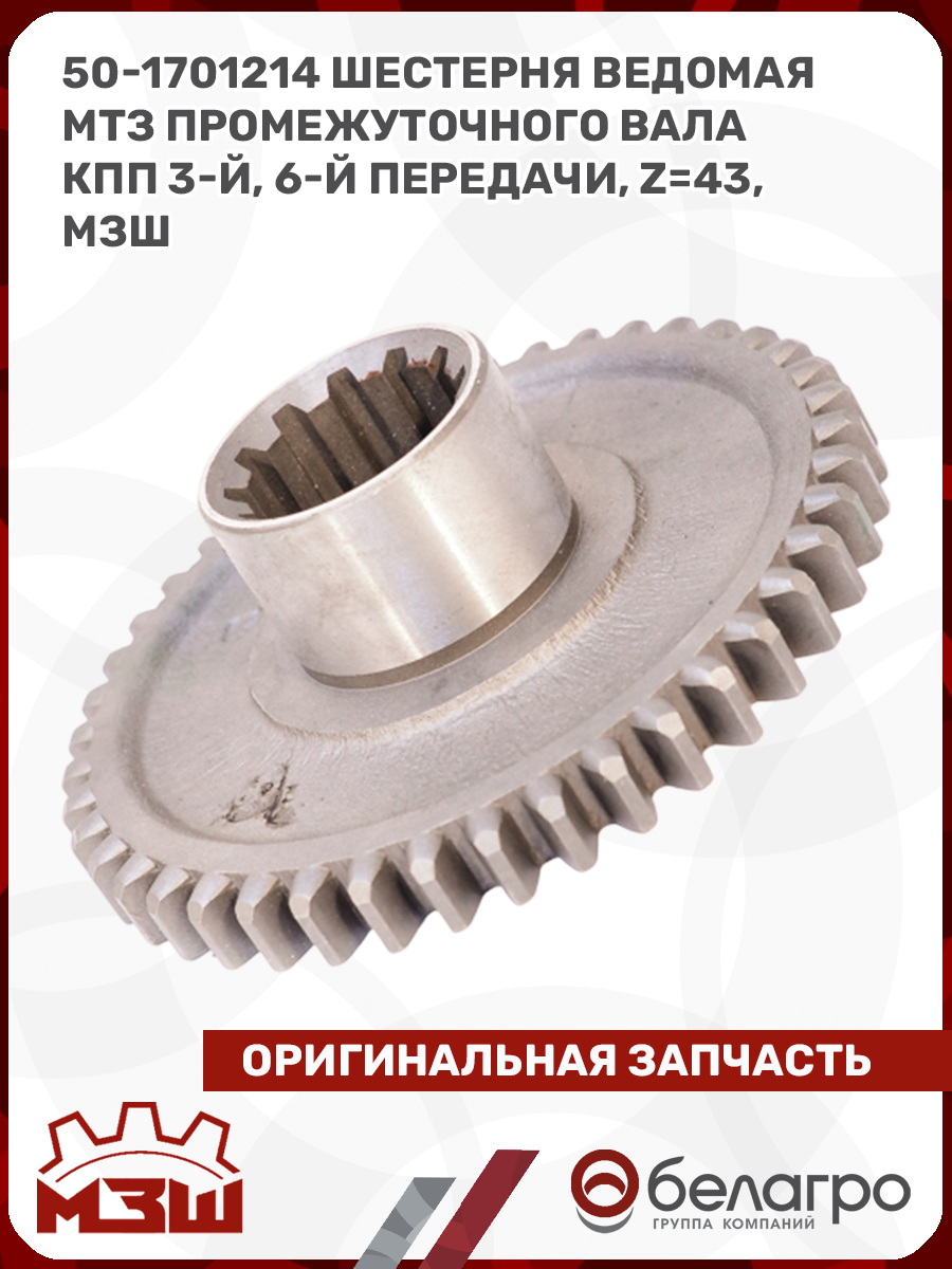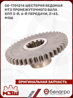 50-1701214 Шестерня ведомая МТЗ промежуточного вала КПП 3-й, 6-й передачи, z=43, МЗШ