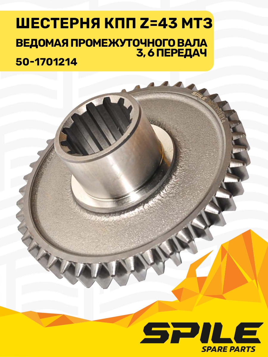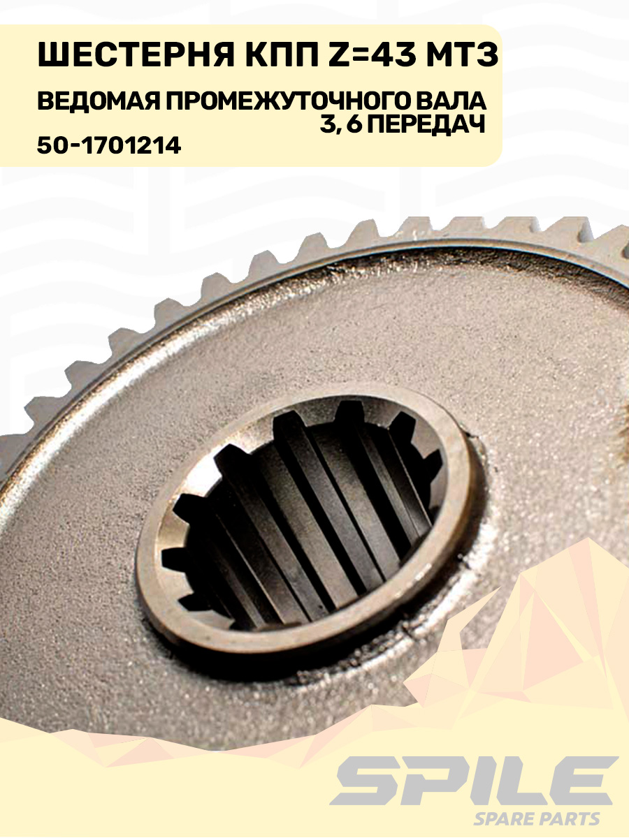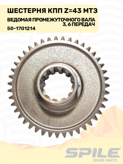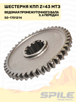 50-1701214 Шестерня ведомая МТЗ промежуточного вала КПП 3-й, 6-й передачи, z=43, SPILE