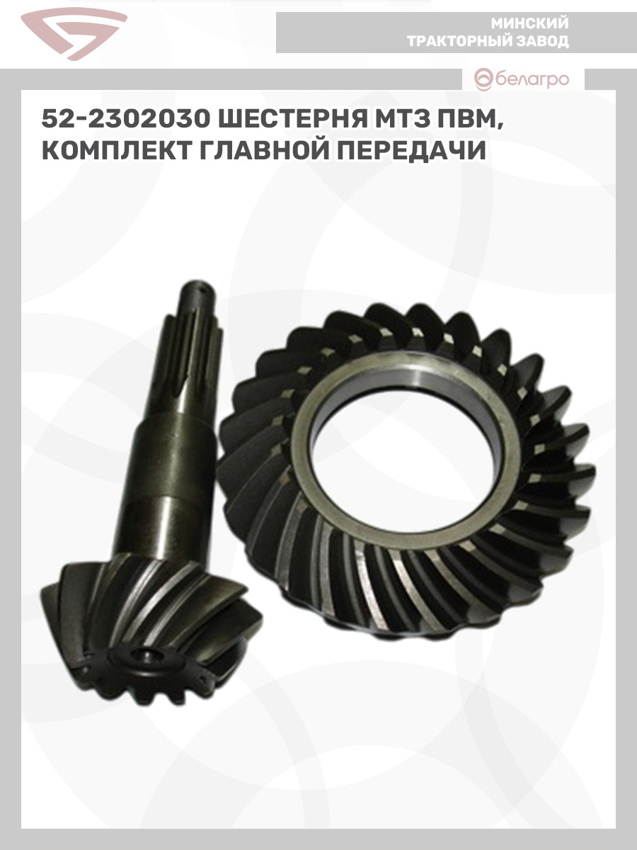 52-2302030 Шестерня МТЗ ПВМ, комплект главной передачи, Беларусь
