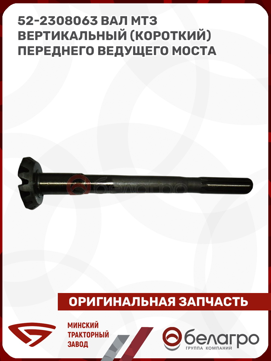 52-2308063 Вал МТЗ вертикальный (короткий) переднего ведущего моста