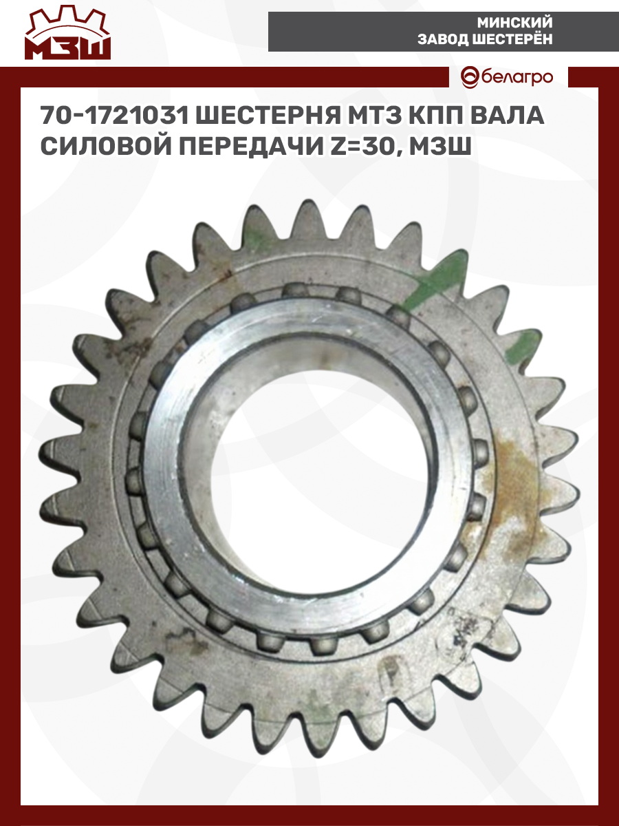 70-1721031 Шестерня МТЗ КПП вала силовой передачи z=30, МЗШ