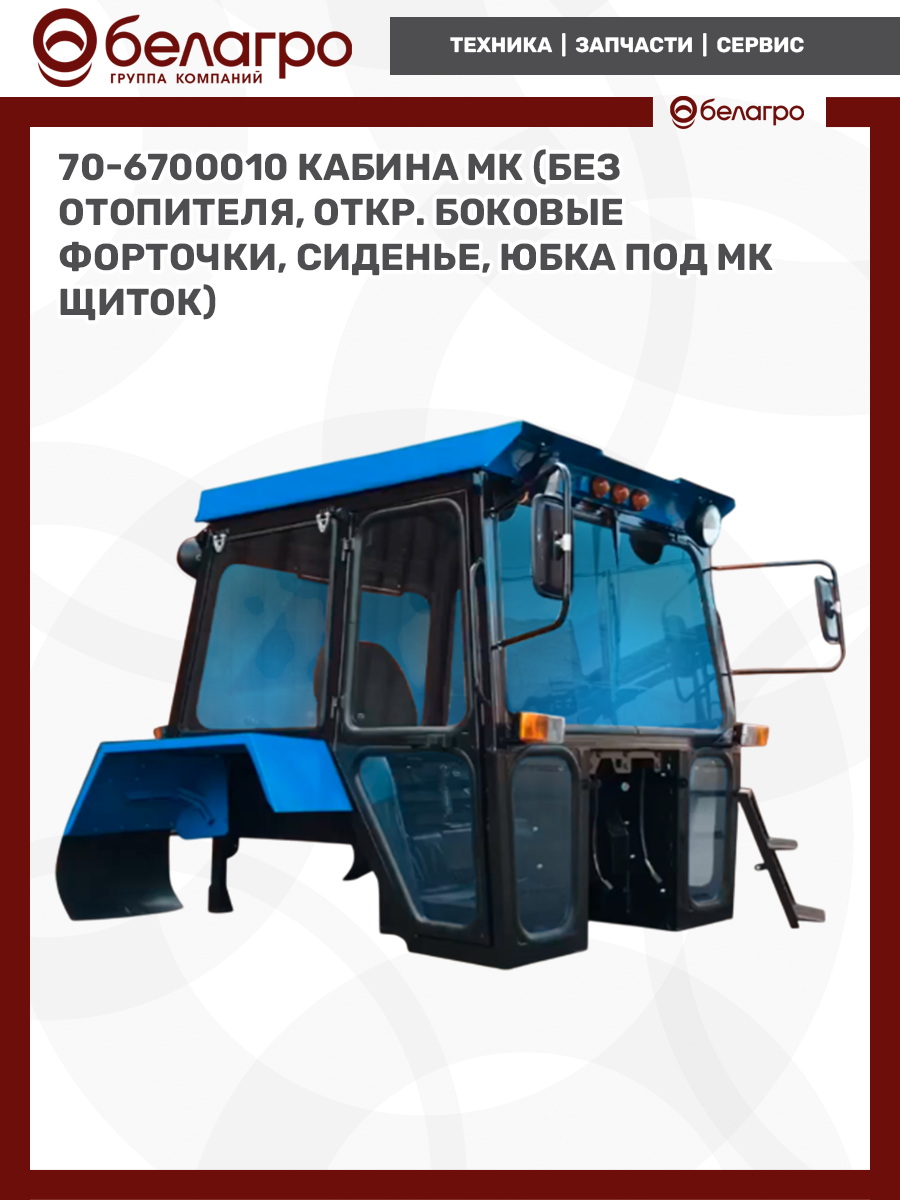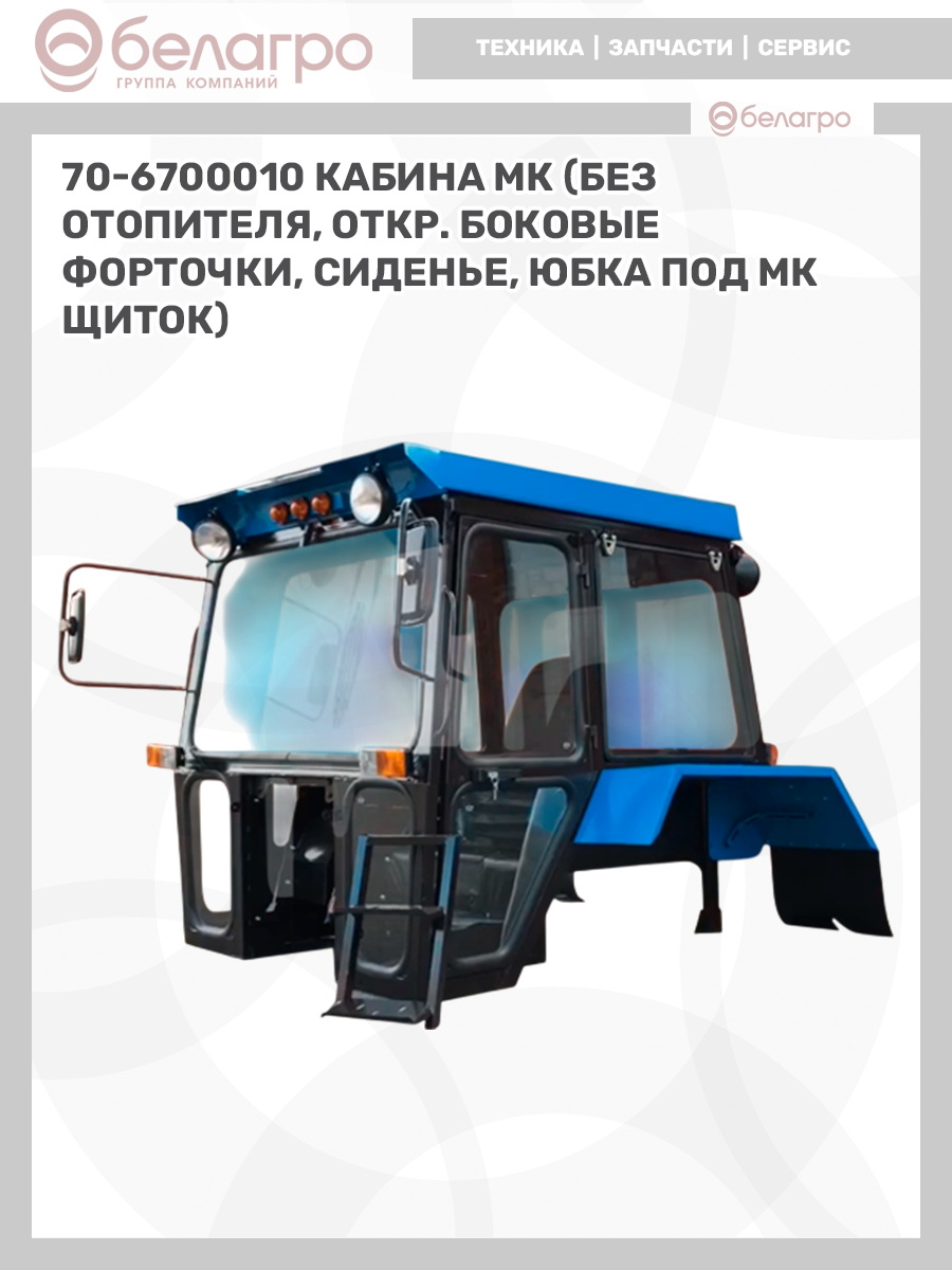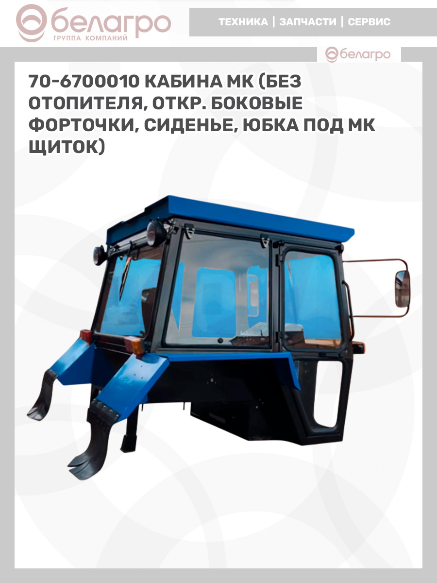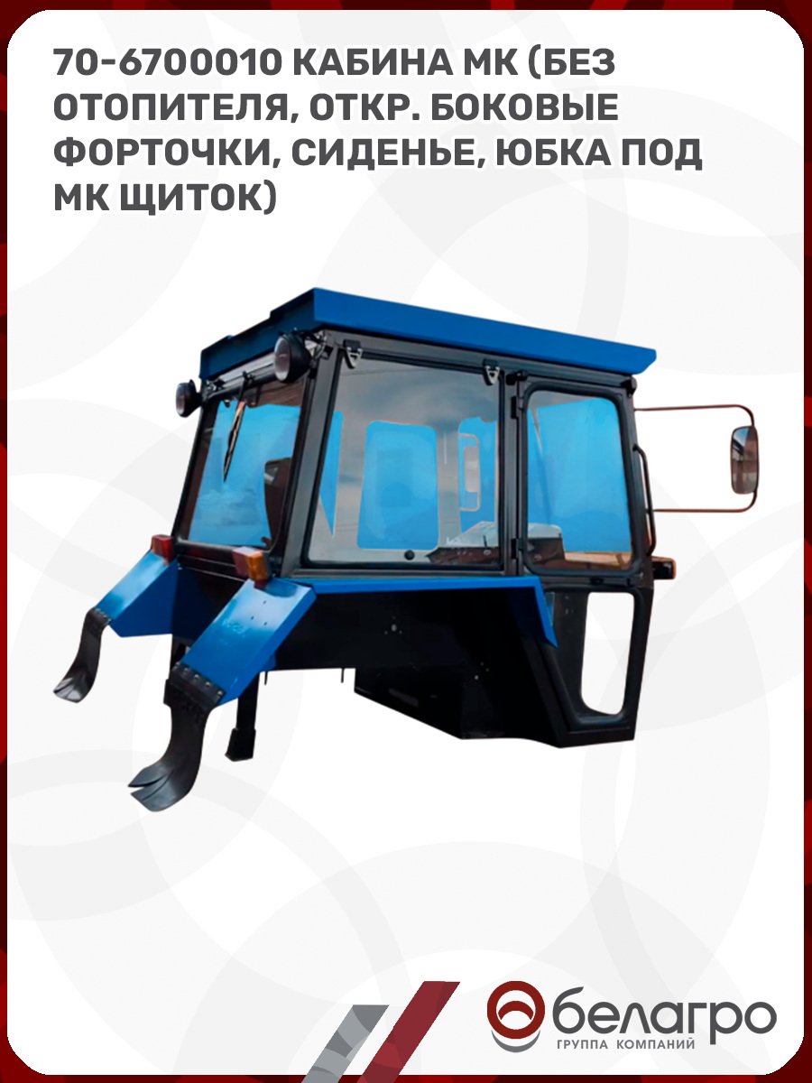 70-6700010 Кабина МК (без отопителя, откр. боковые форточки, сиденье, юбка под МК щиток)