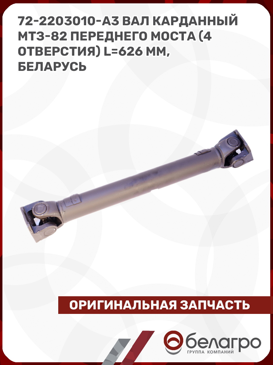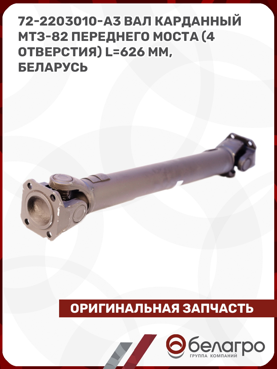 72-2203010-А3 Вал карданный МТЗ-82 переднего моста (4 отверстия) L=626 мм, Беларусь
