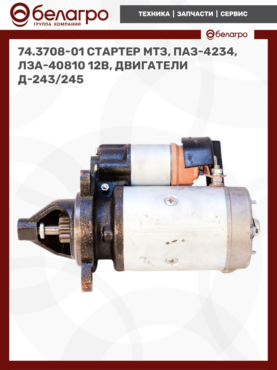 74.3708-02 Стартер МТЗ, ПАЗ-4234, ЛЗА-40810 12 В, двигатели Д-243/245 , Беларусь