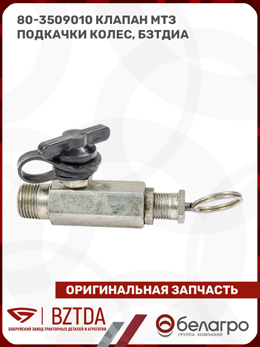 -80-3509010 Клапан МТЗ подкачки колес, БЗТДиАВкладышиГидроходоуменьшители и запчасти к нимЗапчасти к автомобилямГильзы цилиндровЗапчасти к спецтехнике АМКОДОРДвигателиЗапчасти к коммунальной спецтехникеДвигатели, запчасти к нимРасходники и техжидкостиЗапчасти к двигателямХодовая часть и колёсаСистемы и агрегатыКоленвалыПоршневые кольцаПоршневые пальцыПоршнекомплектыПоршниПусковые двигатели и запчасти к нимТурбокомпрессорыЗапчасти к тракторам ХТЗ (Т-150)