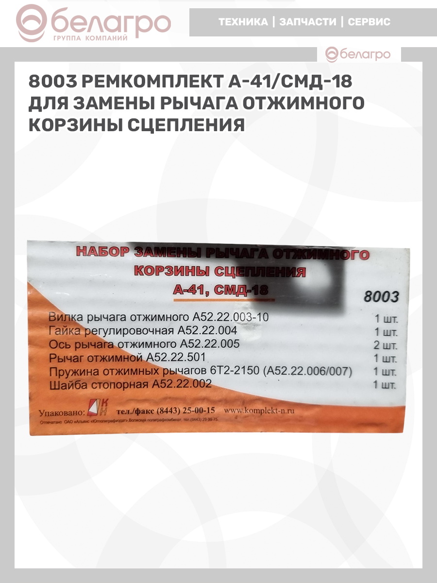 8003 Р/к А-41/СМД-18 для замены рычага отжимного корзины сцепления
