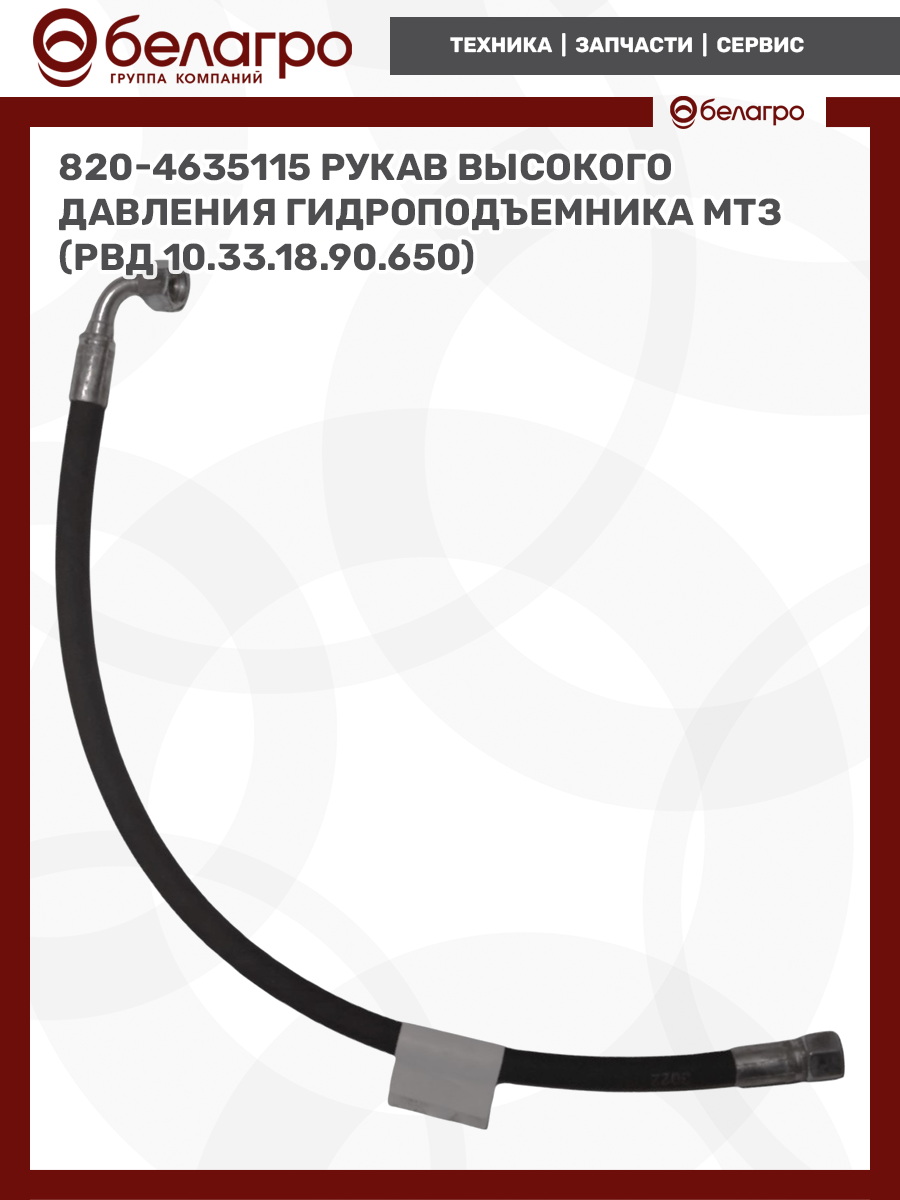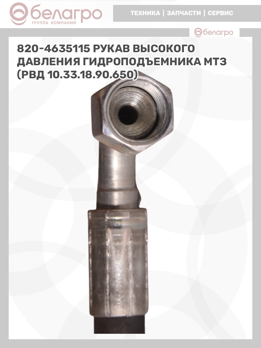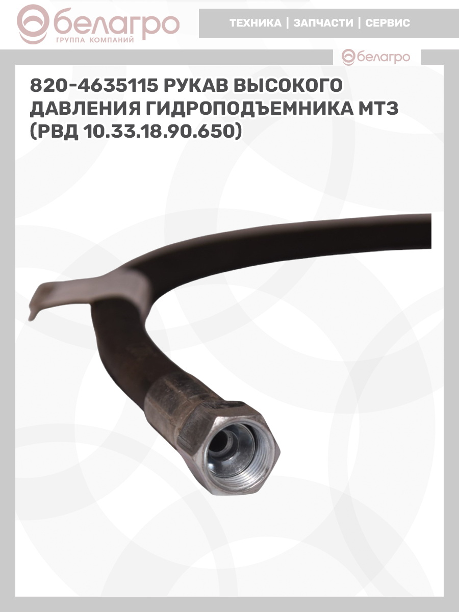 820-4635115 Рукав высокого давления гидроподъемника МТЗ (РВД 10.33.18.90.650), Беларусь