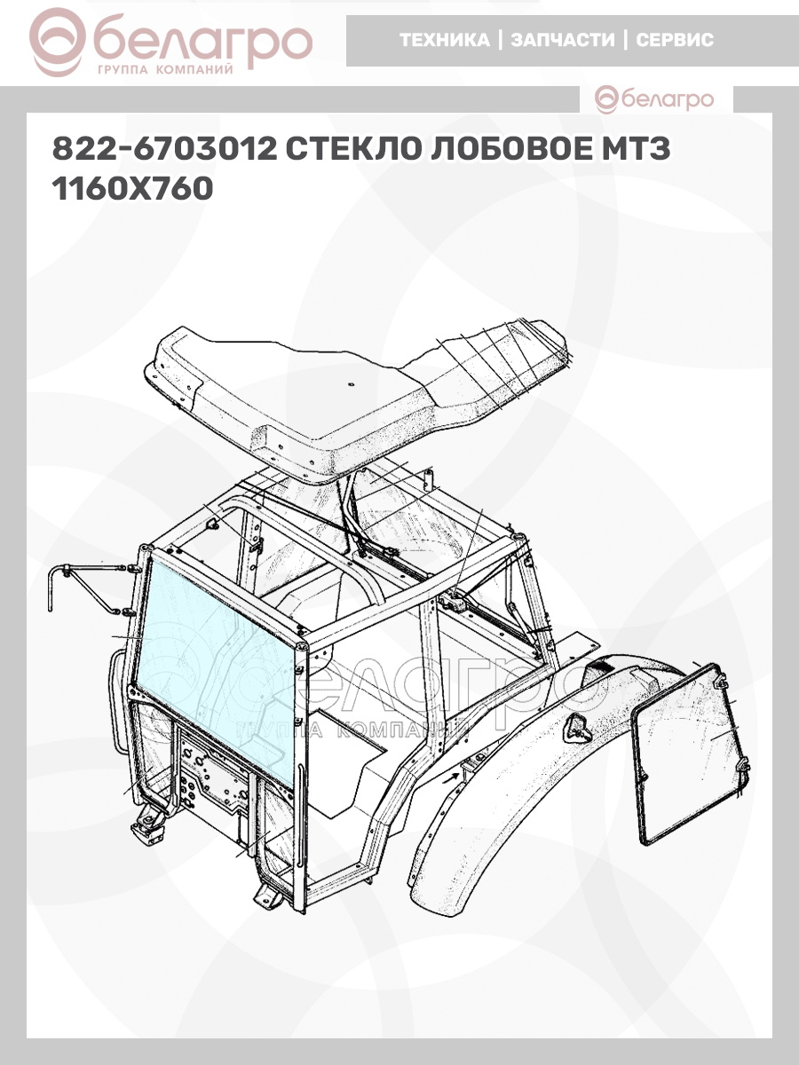 822-6703012 Стекло лобовое МТЗ 1160х760, Беларусь