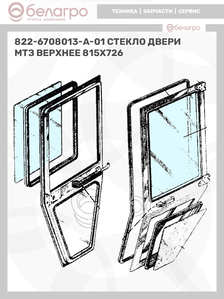 822-6708013-А-01 Стекло двери МТЗ верхнее, 815х726, Беларусь