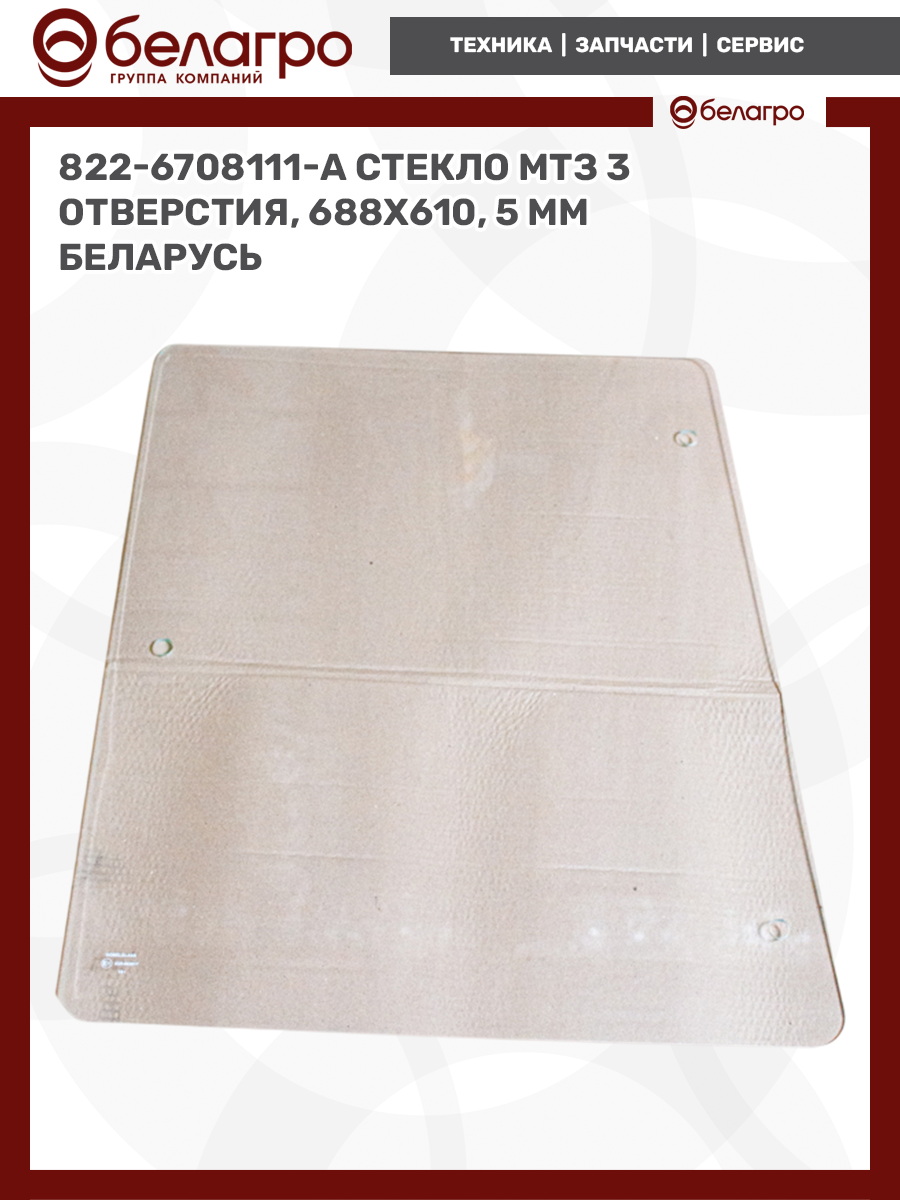 822-6708111-А Стекло МТЗ 3 отверстия, 688х610, 5 мм Беларусь