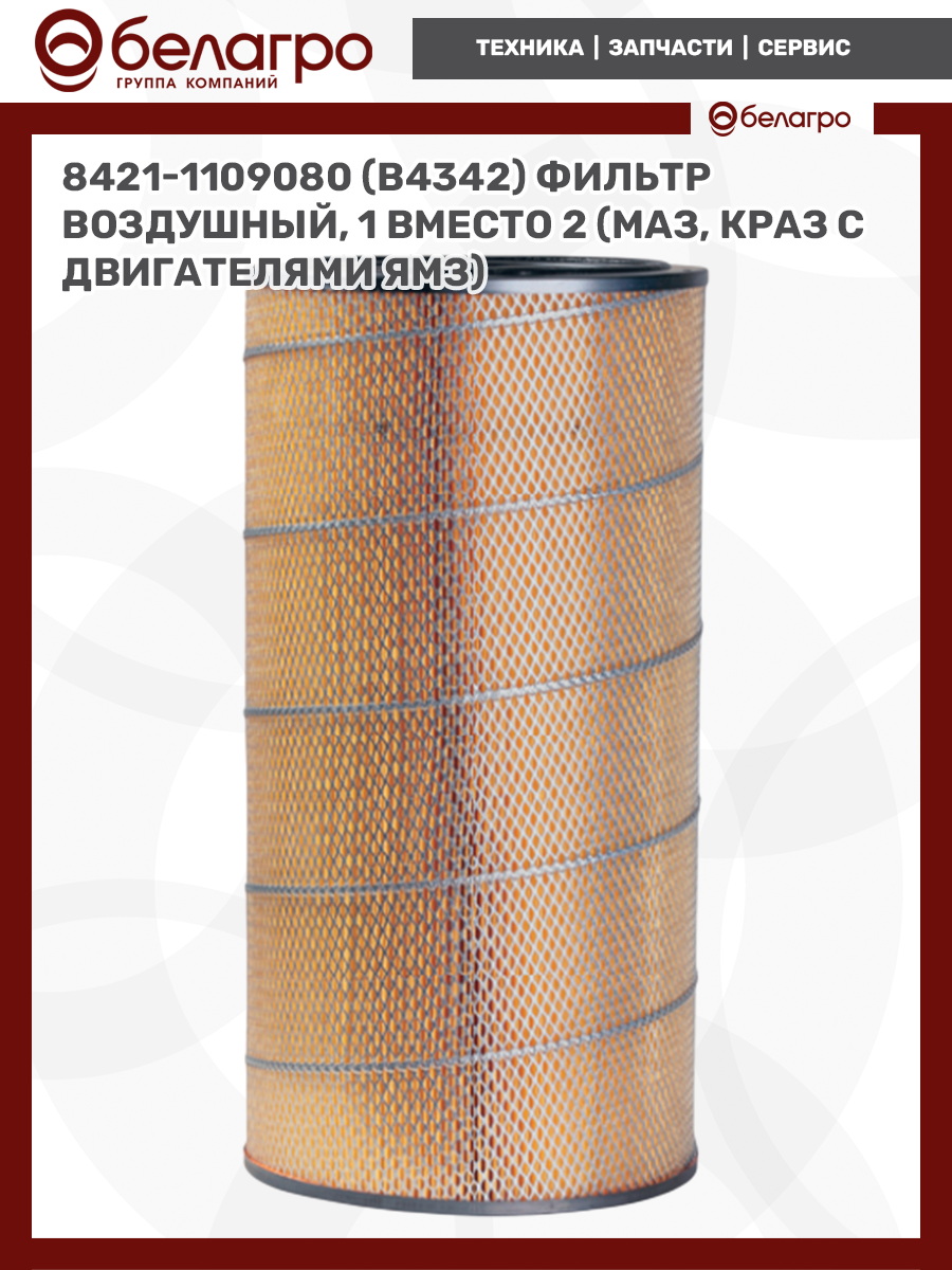 --8421-1109080 (В4342) Фильтр воздушный (1 вместо 2) (МАЗ,КРАЗ с двиг.ЯМЗ)Запчасти к тракторам Беларус (МТЗ)ВкладышиГидроходоуменьшители и запчасти к нимЗапчасти к автомобилямГильзы цилиндровЗапчасти к спецтехнике АМКОДОРДвигателиЗапчасти к коммунальной спецтехникеДвигатели, запчасти к нимРасходники и техжидкостиХодовая часть и колёсаЗапчасти к двигателямСистемы и агрегатыКоленвалыПоршневые кольцаПоршневые пальцыПоршнекомплектыПоршниПусковые двигатели и запчасти к нимТурбокомпрессорыЗапчасти к тракторам ХТЗ (Т-150)