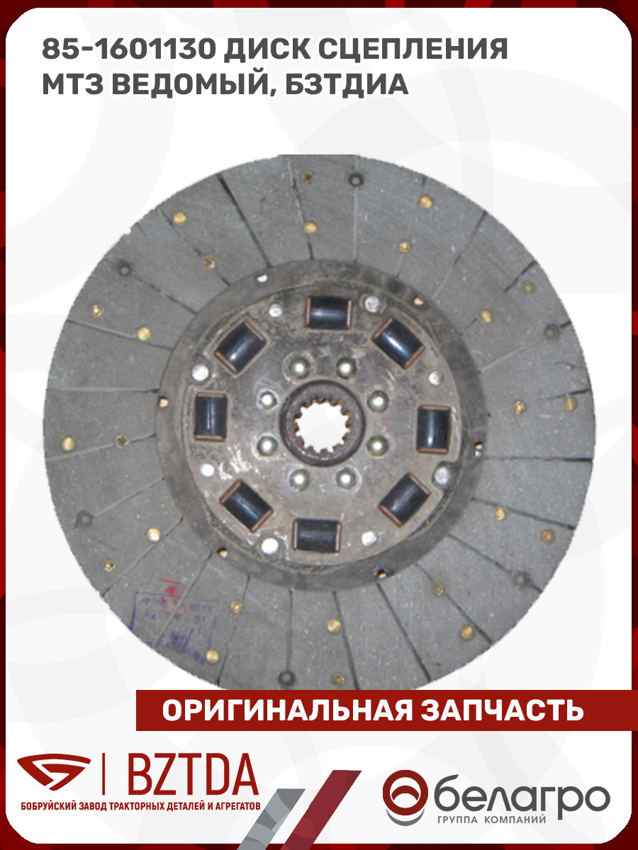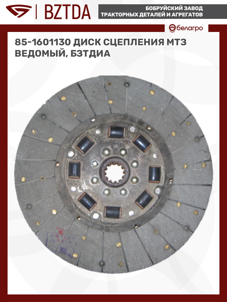 -85-1601130 Диск сцепления МТЗ ведомый, БЗТДиАВкладышиГидроходоуменьшители и запчасти к нимЗапчасти к автомобилямГильзы цилиндровЗапчасти к спецтехнике АМКОДОРДвигателиЗапчасти к коммунальной спецтехникеДвигатели, запчасти к нимРасходники и техжидкостиЗапчасти к двигателямХодовая часть и колёсаСистемы и агрегатыКоленвалыПоршневые кольцаПоршневые пальцыПоршнекомплектыПоршниПусковые двигатели и запчасти к нимТурбокомпрессорыЗапчасти к тракторам ХТЗ (Т-150)