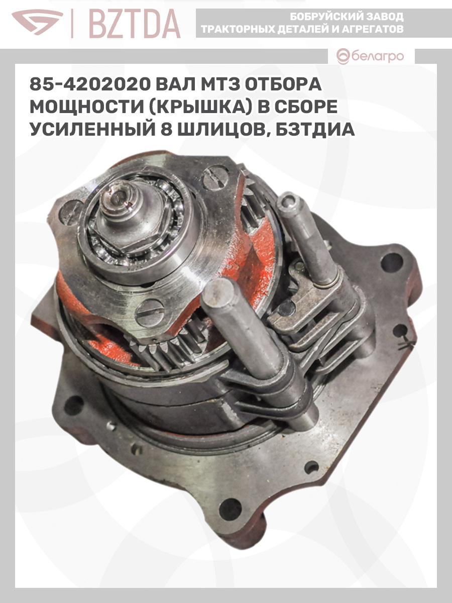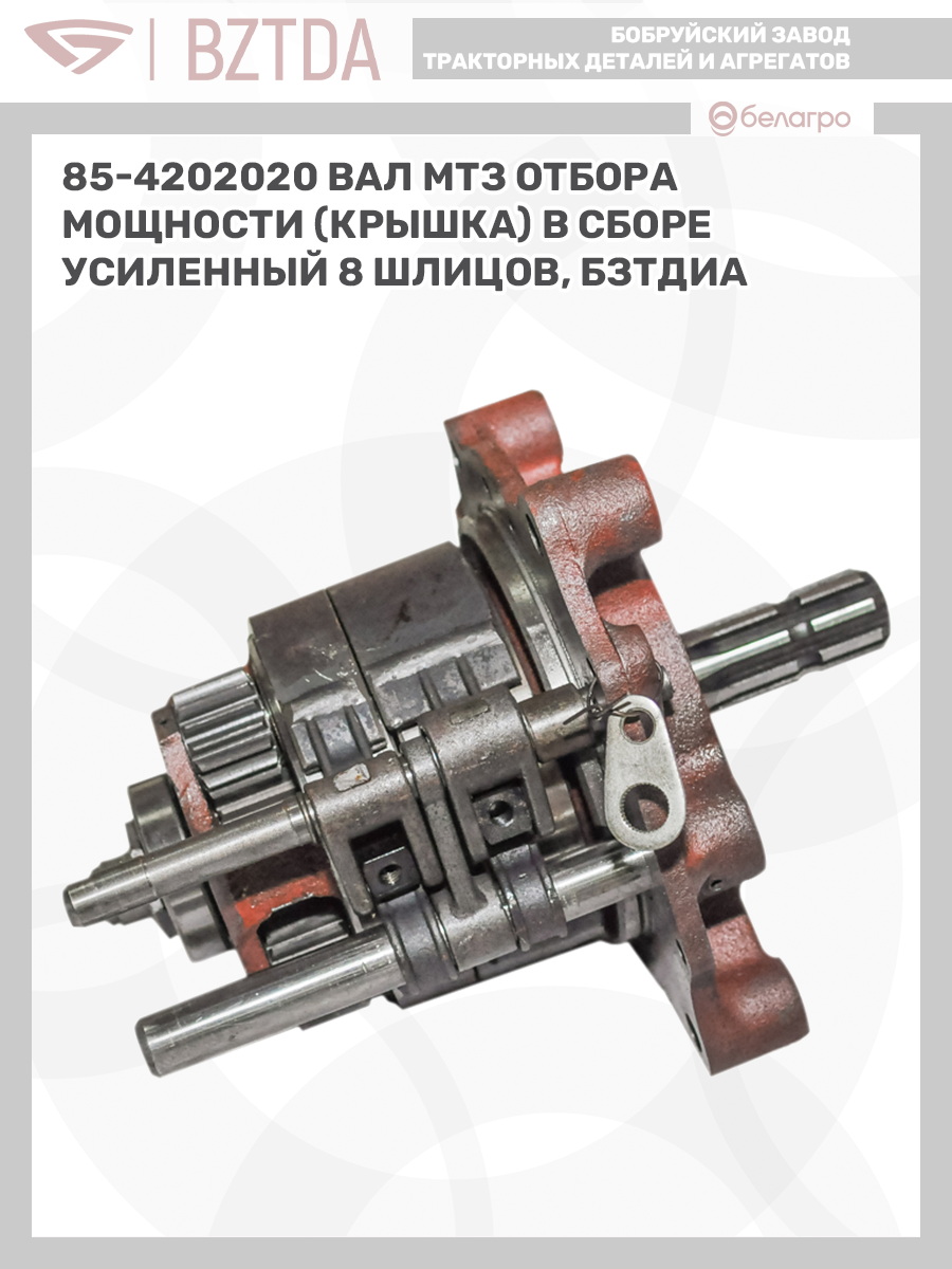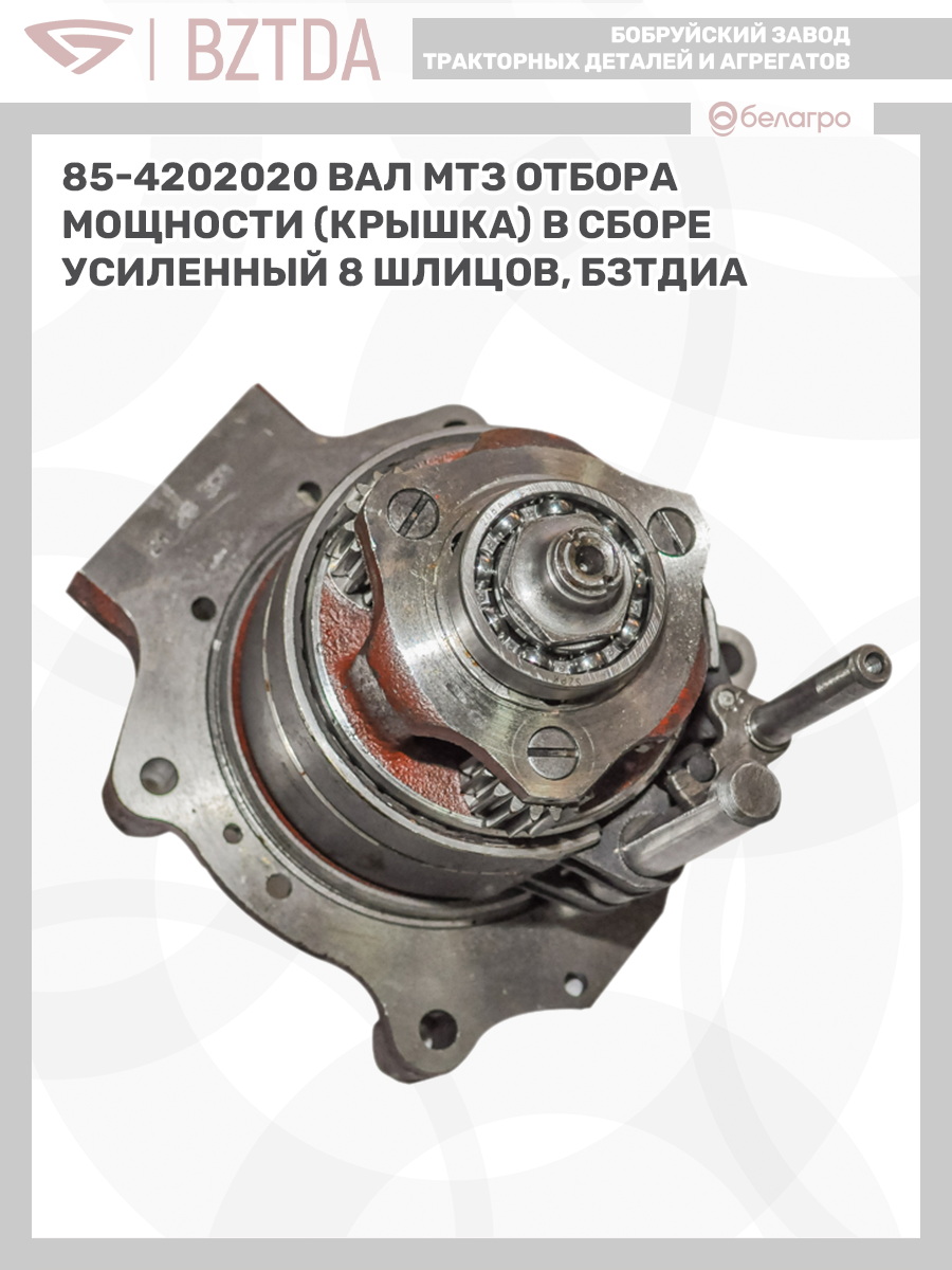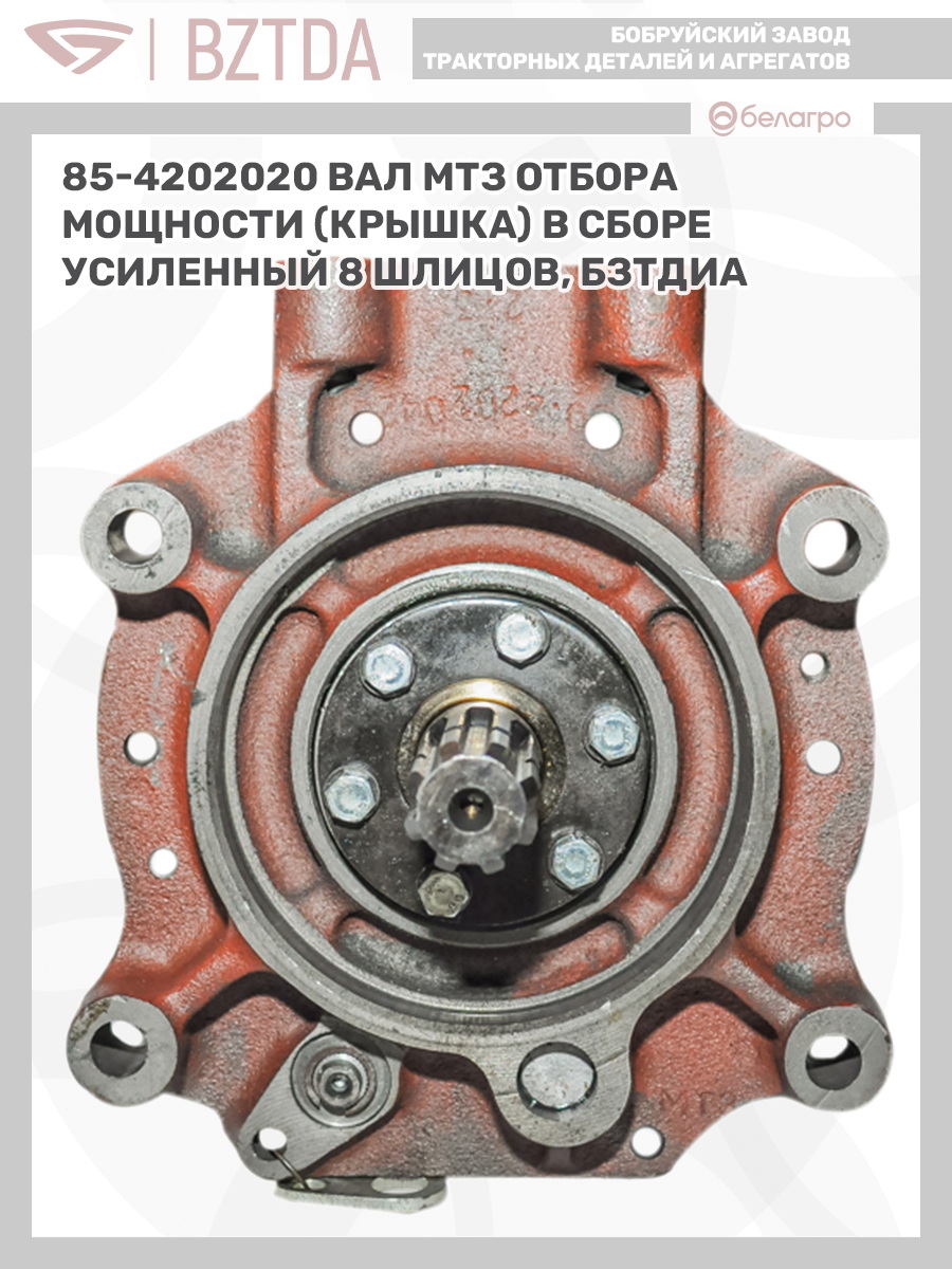 85-4202020 Вал МТЗ отбора мощности (крышка) в сборе усиленный (8 шлицов), БЗТДиА