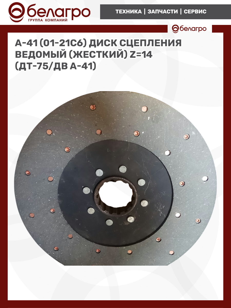 А-41 (01-21с6) Диск сцепления ведомый (жесткий) Z=14 (ДТ-75/ДВ А-41), (А)
