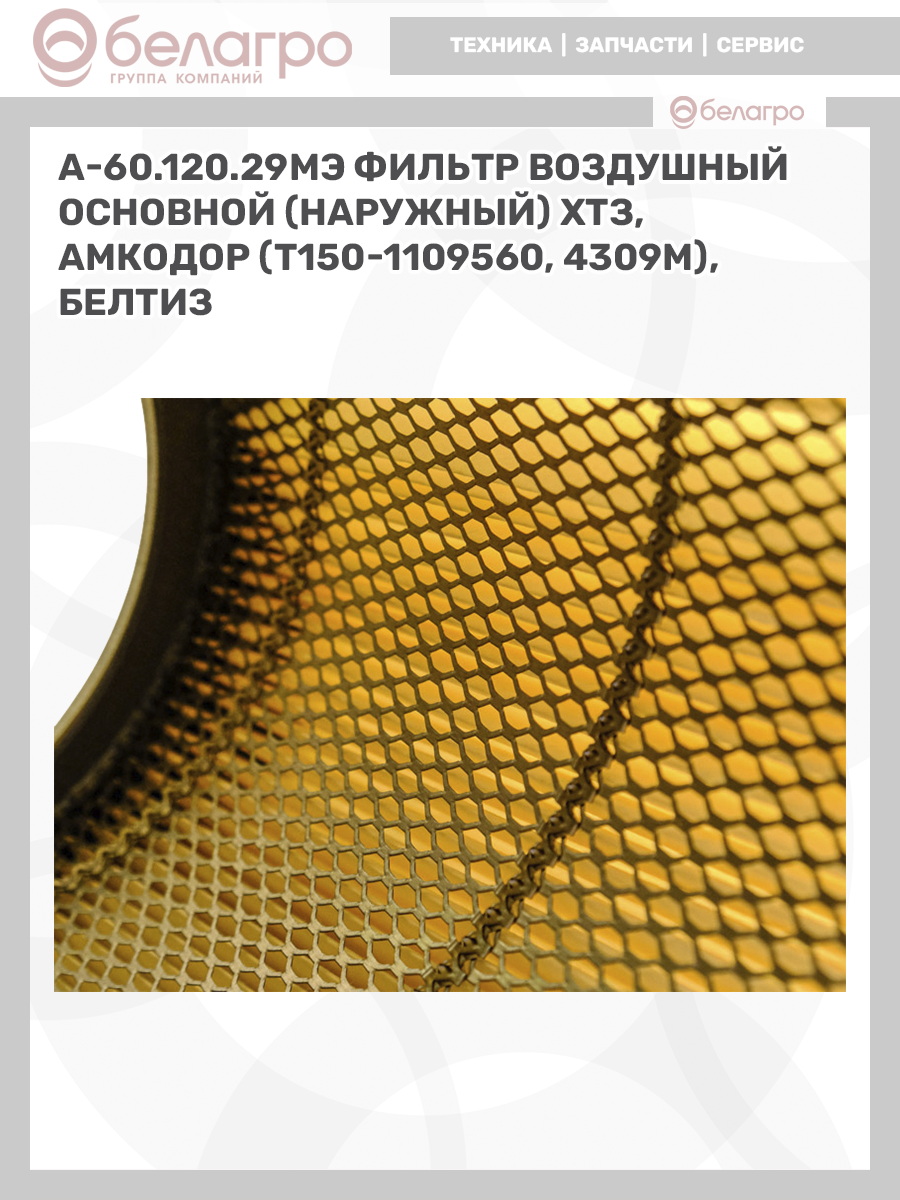 А-60.120.29МЭ Фильтр воздушный основной(наружный) ХТЗ, Амкодор (Т150-1109560, 4309М), БелТИЗ