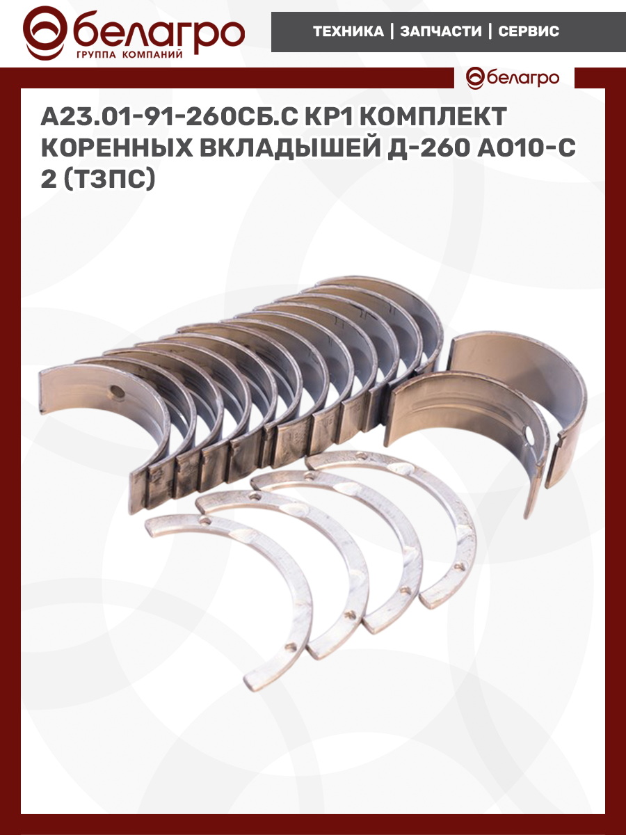 -А23.01-91-260сб.С КР1 Комплект коренных вкладышей Д-260 АО10-С2 (ТЗПС)Запчасти к тракторам Беларус (МТЗ)Гидроходоуменьшители и запчасти к нимЗапчасти к автомобилямГильзы цилиндровЗапчасти к спецтехнике АМКОДОРДвигателиЗапчасти к коммунальной спецтехникеДвигатели, запчасти к нимРасходники и техжидкостиЗапчасти к двигателямХодовая часть и колёсаСистемы и агрегатыКоленвалыПоршневые кольцаПоршневые пальцыПоршнекомплектыПоршниПусковые двигатели и запчасти к нимТурбокомпрессорыЗапчасти к тракторам ХТЗ (Т-150)