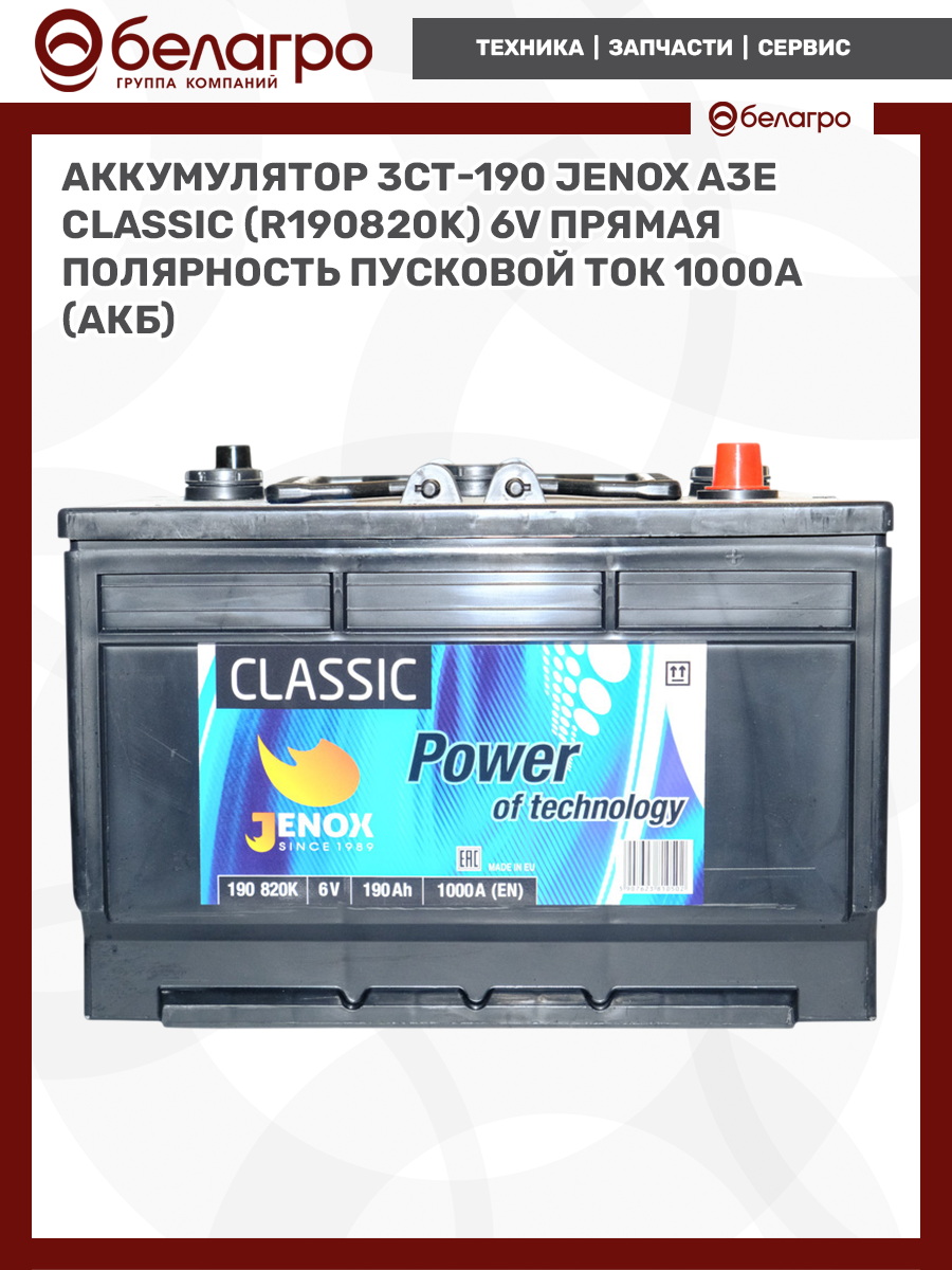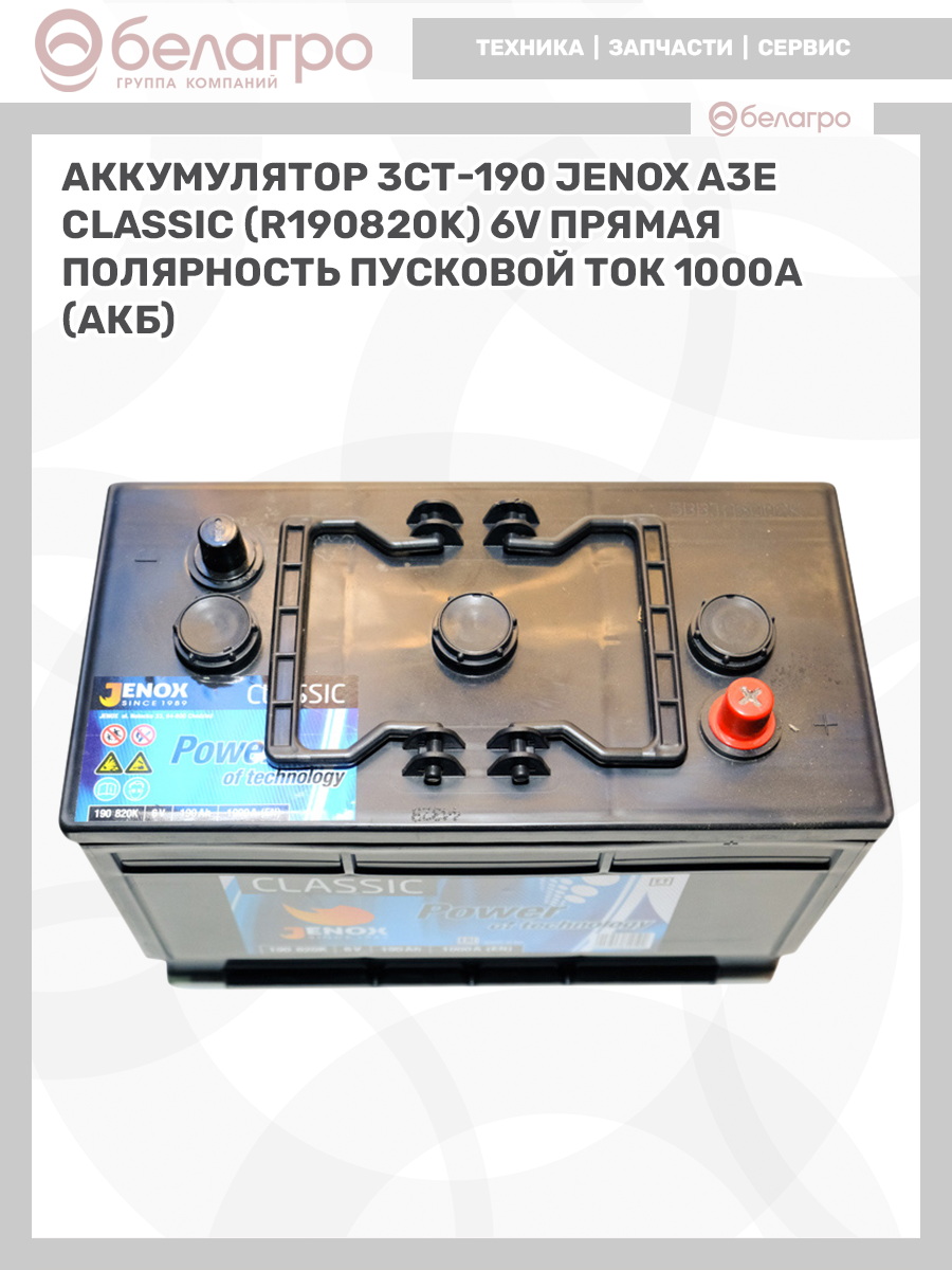 -Аккумулятор 3СТ-190 JENOX A3E Classic (R190820K) 6V Прямая полярность пусковой ток 1000А (АКБ)Выключатели, переключателиГенераторы и комплектующиеГидроарматураГидроарматура (муфты, переходники, штуцера)ГидрораспределительГидроцилиндрыДатчики, указатели, приборыемкость 120-140 А/чемкость 45-62 А/чемкость 66-77 А/чемкость 90-100 А/чЗапчасти к тракторам Беларус (МТЗ)Клеммы, проводаКомплекты переоборудованияНасосыПатрубкиПлунжерные парыПрочееПрочиеРадиаторыРаспределитель гурРаспределитель подъема кузоваРегуляторыРеле и регуляторыРемкомплектыСтартеры и комплектующиеТНВД, ТННДТрубопроводыФары, фонари и комплектующиеФорсунки, распылители